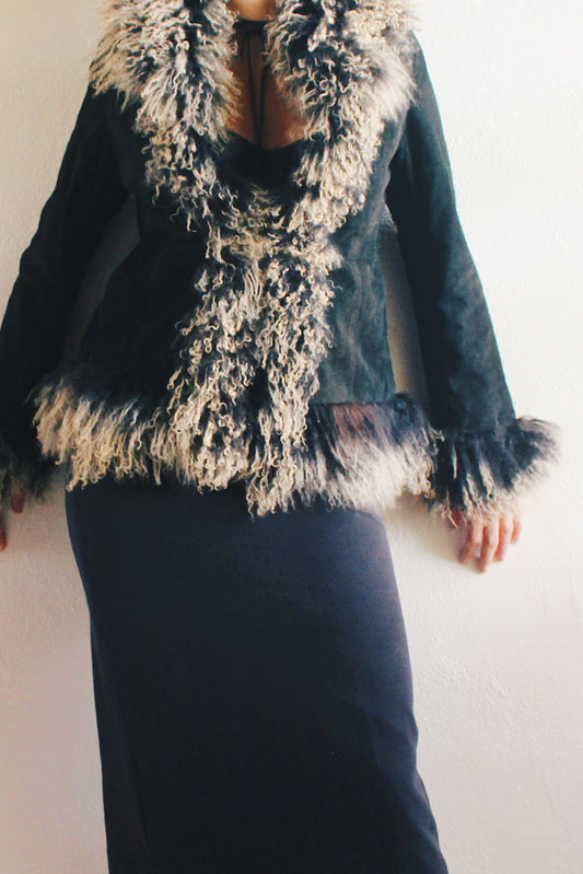 Retro Chic: Vintage Black Fur-Lined Afghan Jacket - Your Whimsygoth Dream!