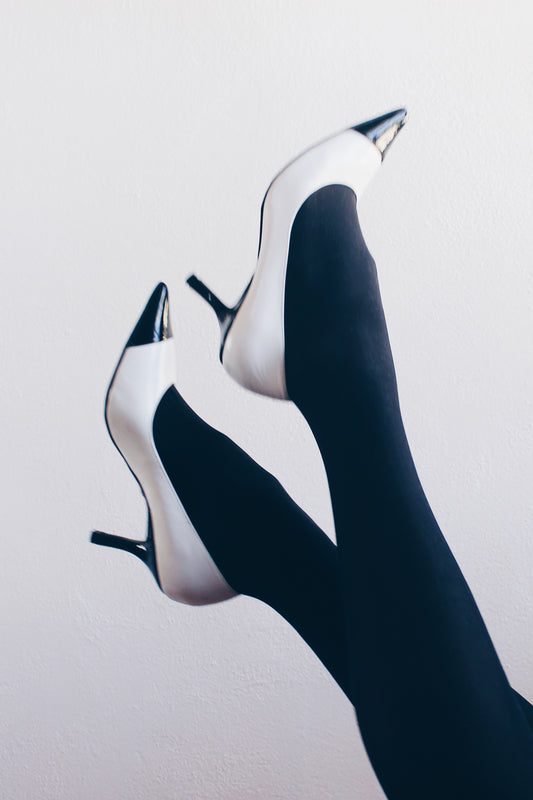 Retro Chic: Vintage Black Tip Kitten Heels - Wingtip Chanel style noir shoes