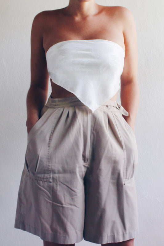 Reworked mermaid core French hanky hem tank top / cream floral Upcycled Bandeau / baroque Tapestry Haltar Crop Top