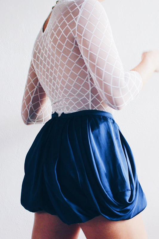 Step Right Up to Dark Circus Glory with Blue Satin Trunkhose Shorts