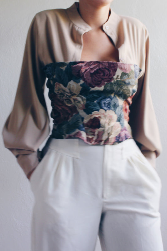 Upcycled tapestry crop top / Reworked Fashion corset crop top / upcycled lace up harness