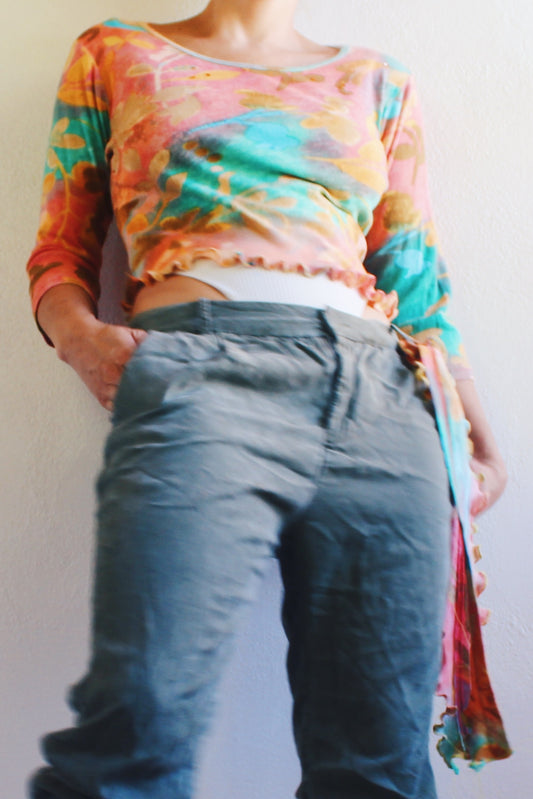 Vintage '90s asymmetric lettuce hem Shirt - Where Fairy-Core, Whimsigoth, and Grunge Collide!
