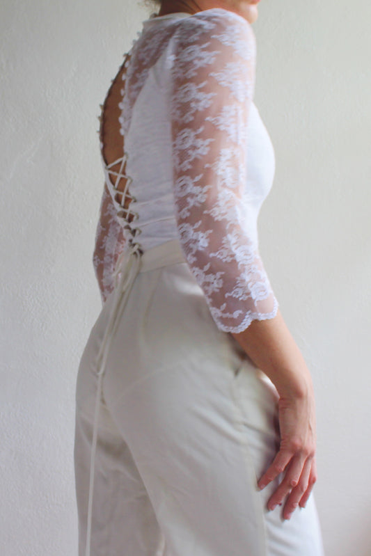 Upcycled White Lace Long Sleeve Crop Top - Ethereal Victorian Grunge Style | Vintage Wedding Dress Reworked | Coquette Edwardian Fashion