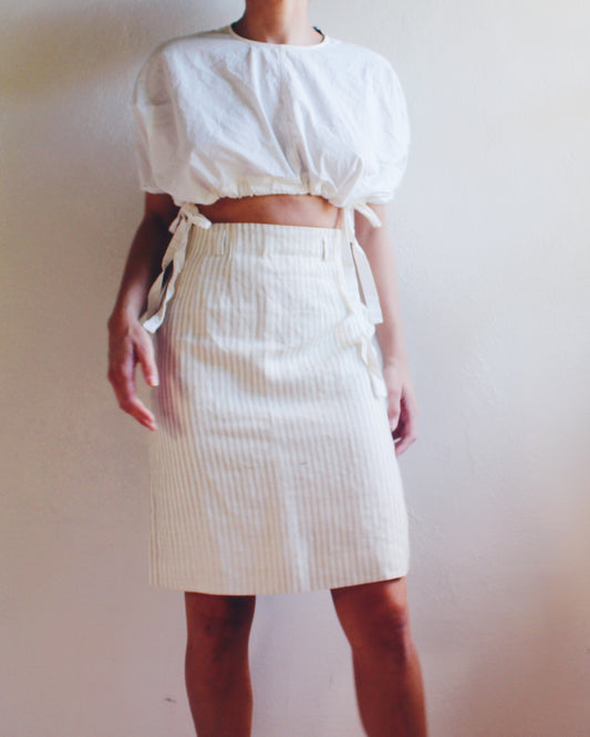 Beige Striped Linen Midi Skirt - Minimalist Pinstripe 90s Style | Perfect Summer and fall Skirt