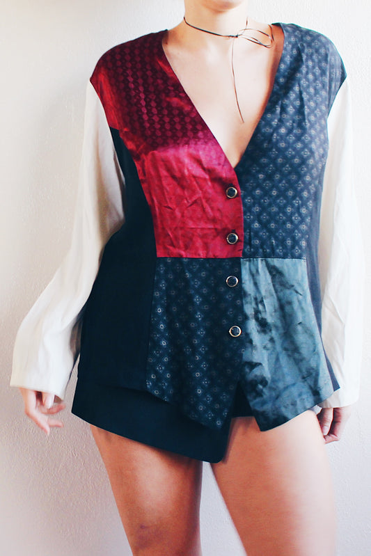 Academic Sleaze: Vintage Blouse with Attached Vest - Retro Bookish Chic!