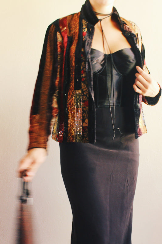 Vintage Black Velvet Patchwork Jacket - 90s Grunge WhimsyGoth Style