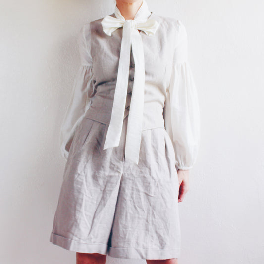 Vintage Beige Linen Pleated Shorts and Vest Set - Academic 90s Minimalism