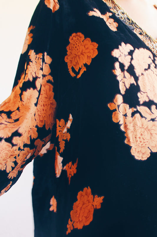Vintage black floral velvet burnout shirt / Whimsygoth bell sleeve top