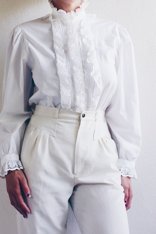 Cottage Elegance: White High-Neck Ruffled Victorian Renewal Blouse for Romantic Souls