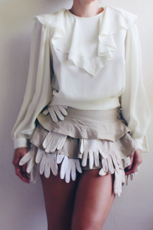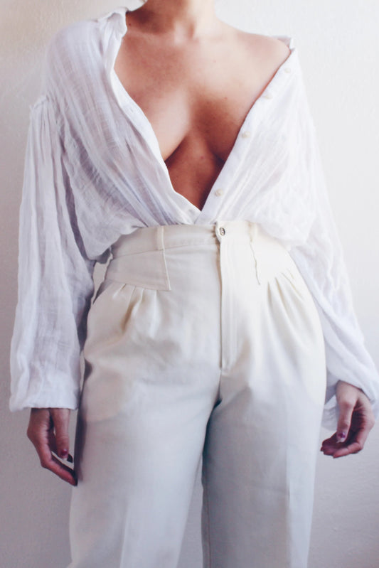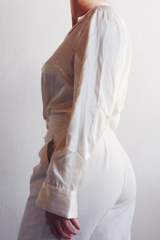 Cream silk vintage blouse / Off white silk button up Top / light weight shirt
