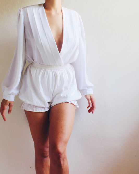 Vintage White Pleated Wrap Style Blouse - 90s Formal Corporate Fashion | lightweight summer shirt