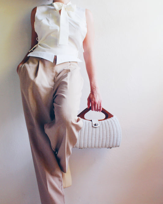 Cottage Core Dreams: Vintage White Straw Handbag for Chic Picnics