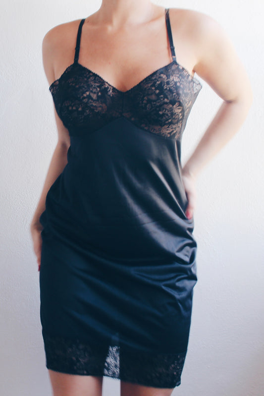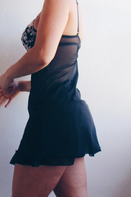 Gothic lace lingerie night dress / Sheer Bust Black Lace Slip