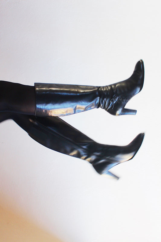Vintage Y2K Leather-Heeled Anne Klein Boots - Calf-Length Librarian Chic