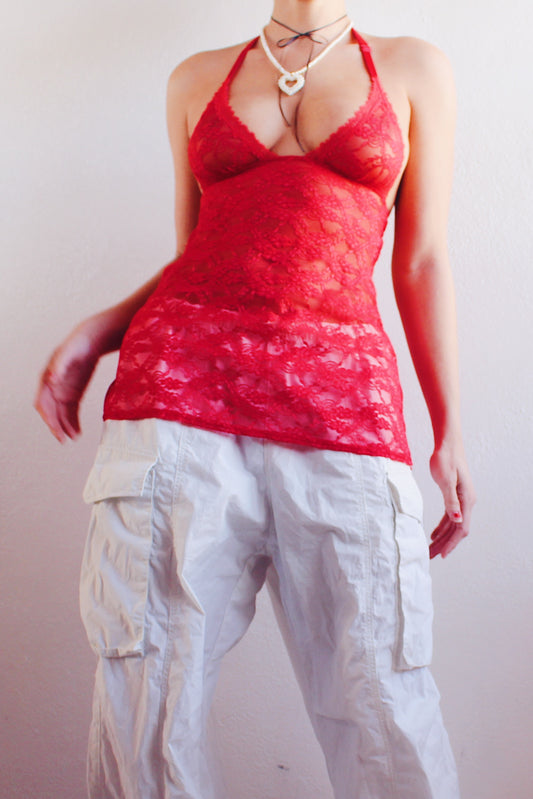Vintage Red Lace Lingerie Slip - Y2K Elegance from Victoria's Secret, Perfect for Valentine's Day