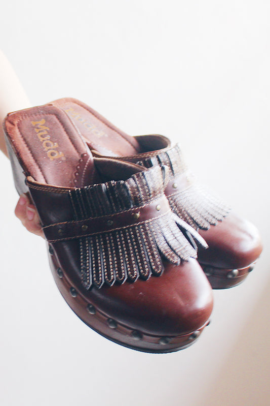 Whimsigoth Wonderland: Vintage 90s Brown Chunky Mudd Clogs of Artsy Delight!