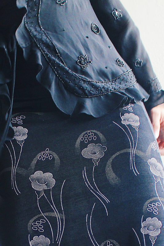 Vintage 90s Black Floral Maxi Skirt - Romantic Grunge Whimsygoth Style