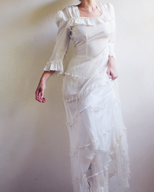 Vintage Handmade Heirloom Wedding Gown – Ethereal Sheer Tiered Dress | Delicate Haunting Bridal Style
