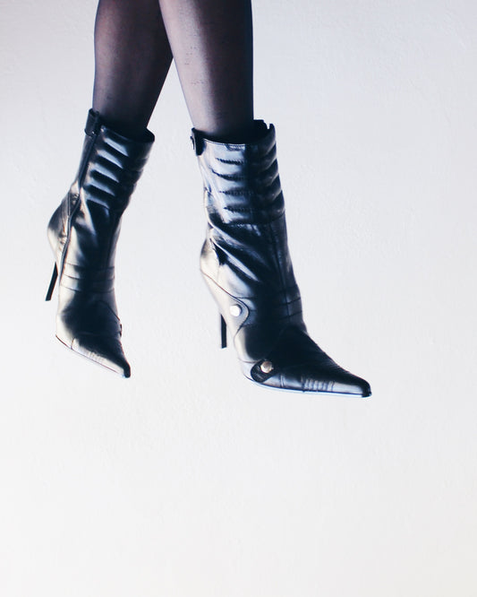 Y2K Pointed Toe Stiletto Boots – Vintage Aldo Black Leather Ankle Boots | Early 2000s Iconic Heels