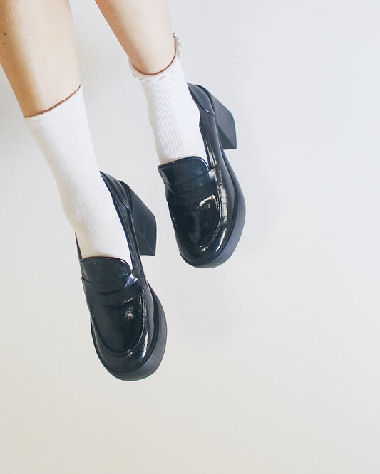 Chunky Heel Loafers – Dark Academia Style Black Leather Shoes