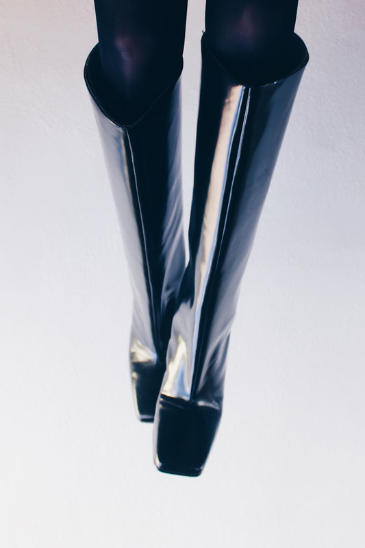 Contemporary Square Toe: High Shaft Leather-Heeled Boots - Knee High Wide Boots