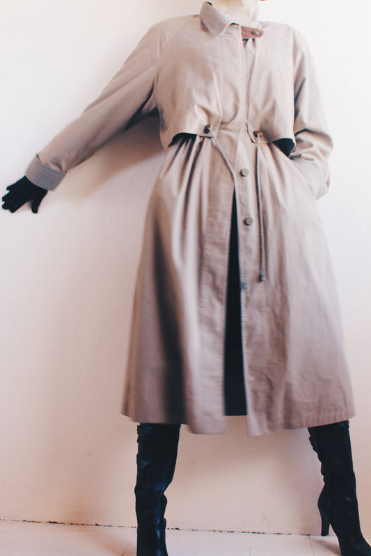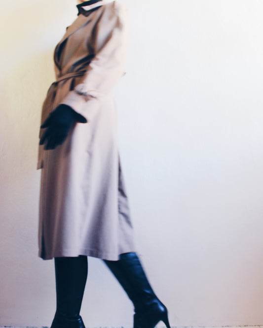 Late 90s Noir: Chic Vintage Khaki Grey Trench Coat