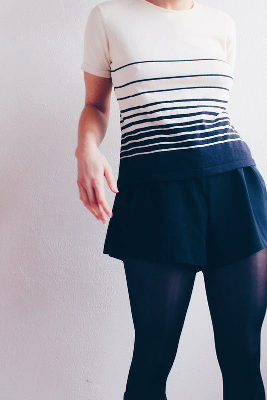 Cafecore 90s: Vintage 90s Striped Short Sleeve Shirt - Chic Minimalist High Neck Top for the Modern Professional