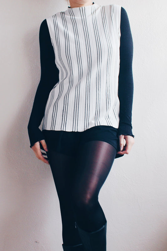 Mockneck Academic: Chic striped Sleeveless knit Top - Corporate 90s Minimalism