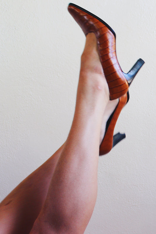 Walk on the Wild Side: Vintage Leather Alligator Kitten Heels / Retro alligator print shoes