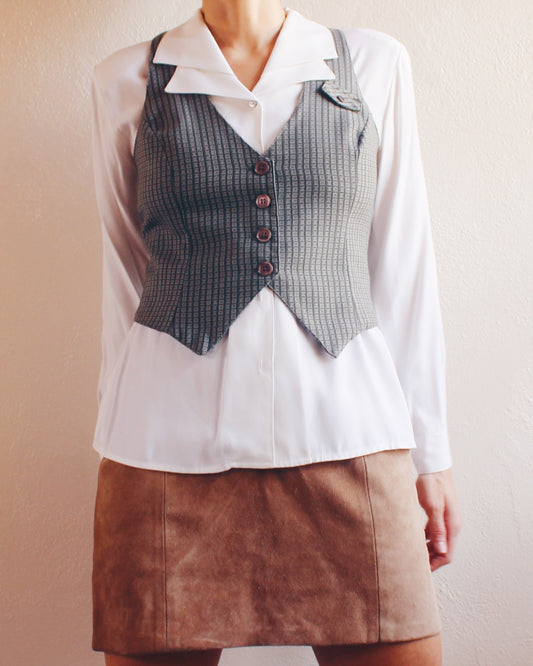 Chic Upcycled Skirt & Blazer Set with Vintage Gloves Lining | Corporate Couture Style: Recycled Glove Skirt