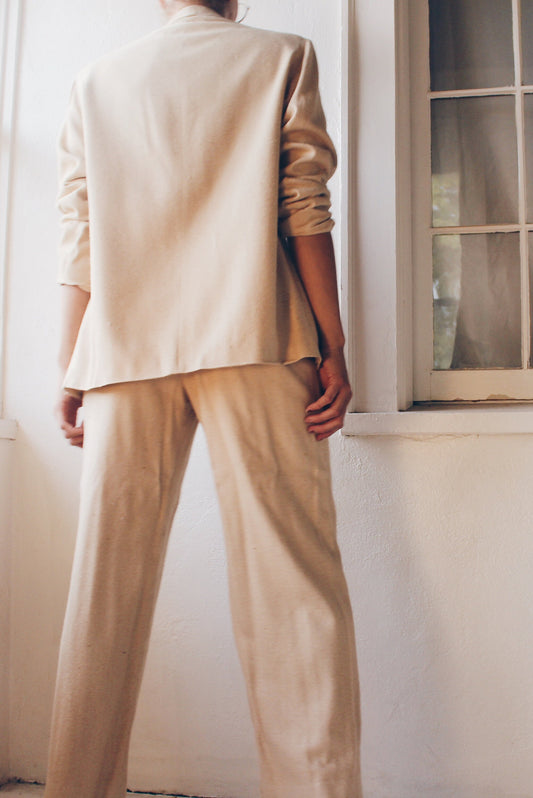 Linen Christian Dior suit set / Dior Light tan blazer pants suit / Minimalist two piece set