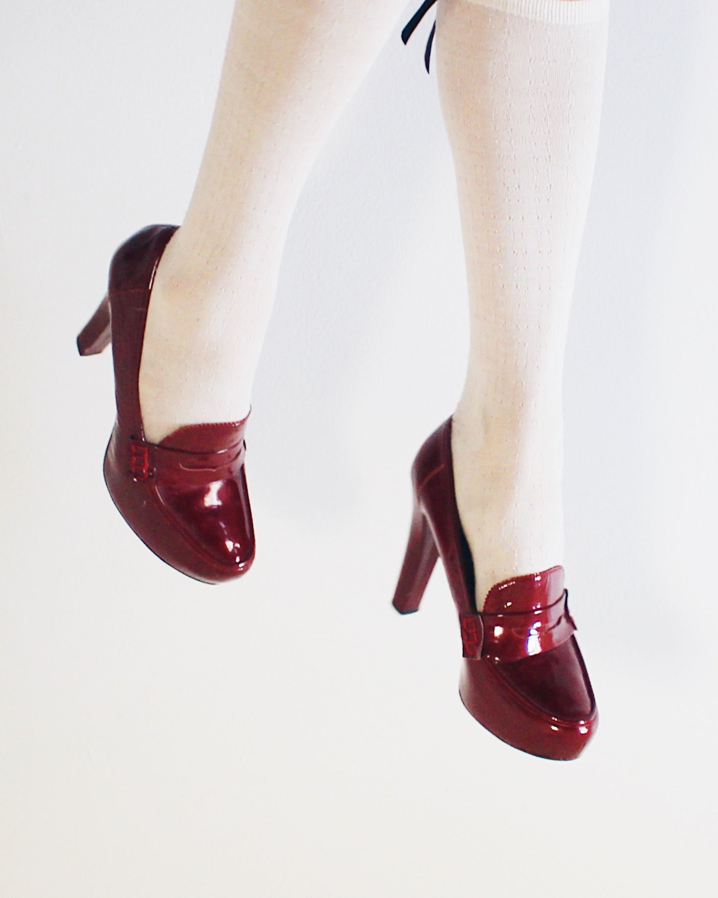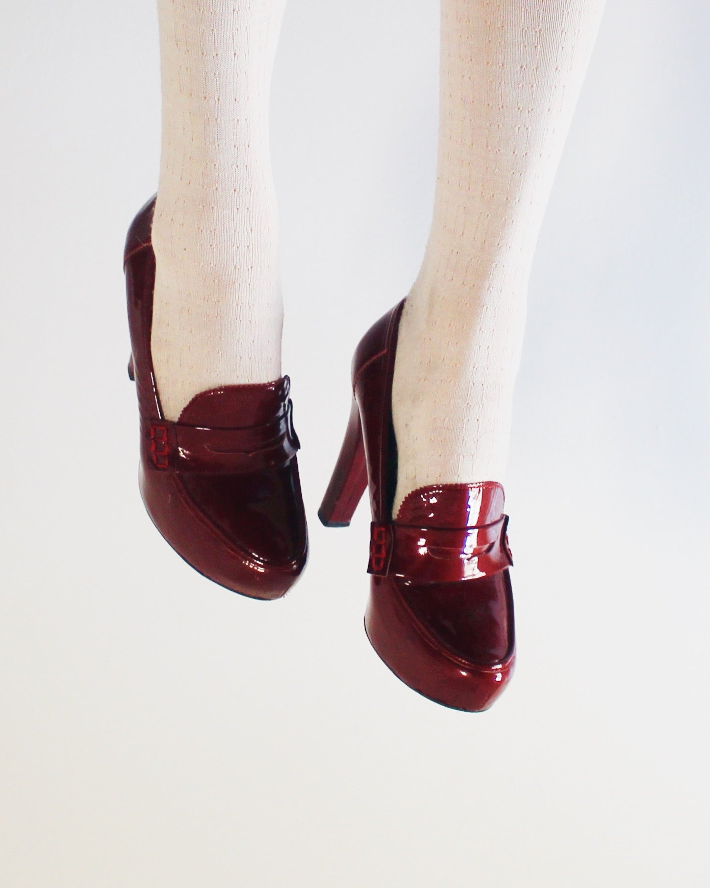 Burgundy Chunky Heeled loafers Librarian shoes with an academic corporate vibe