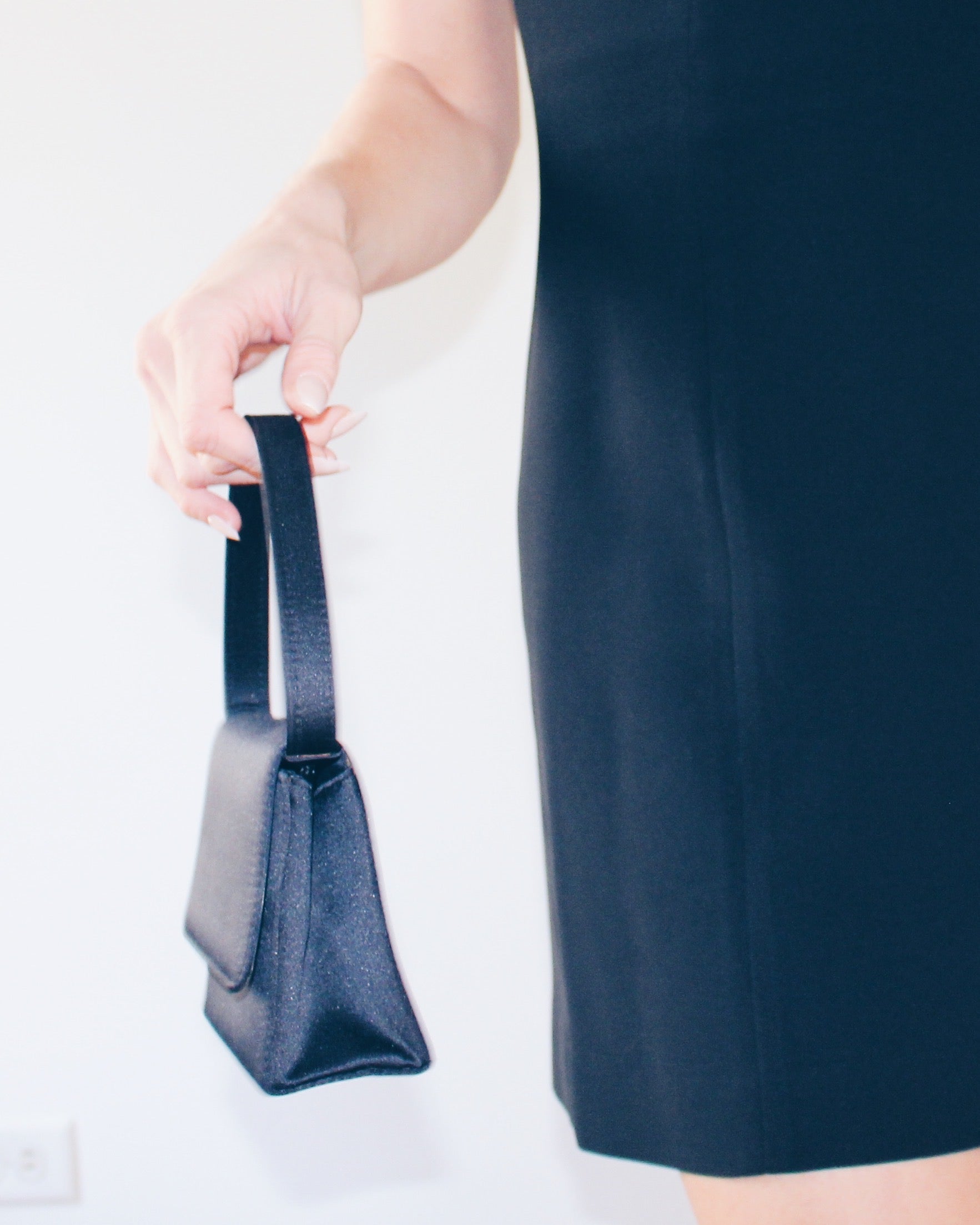 An exquisite black satin vintage Carlo Fellini mini purse. Crafted with meticulous attention to detail, this timeless piece exudes a sophisticated minimalist charm. The sleek black exterior adds a touch of elegance to any ensemble, while the compact size makes it perfect for carrying your essentials in style. Whether you're attending a formal event or a casual outing, this chic purse is sure to make a statement. Don't miss your chance to add this iconic vintage accessory to your collection today!