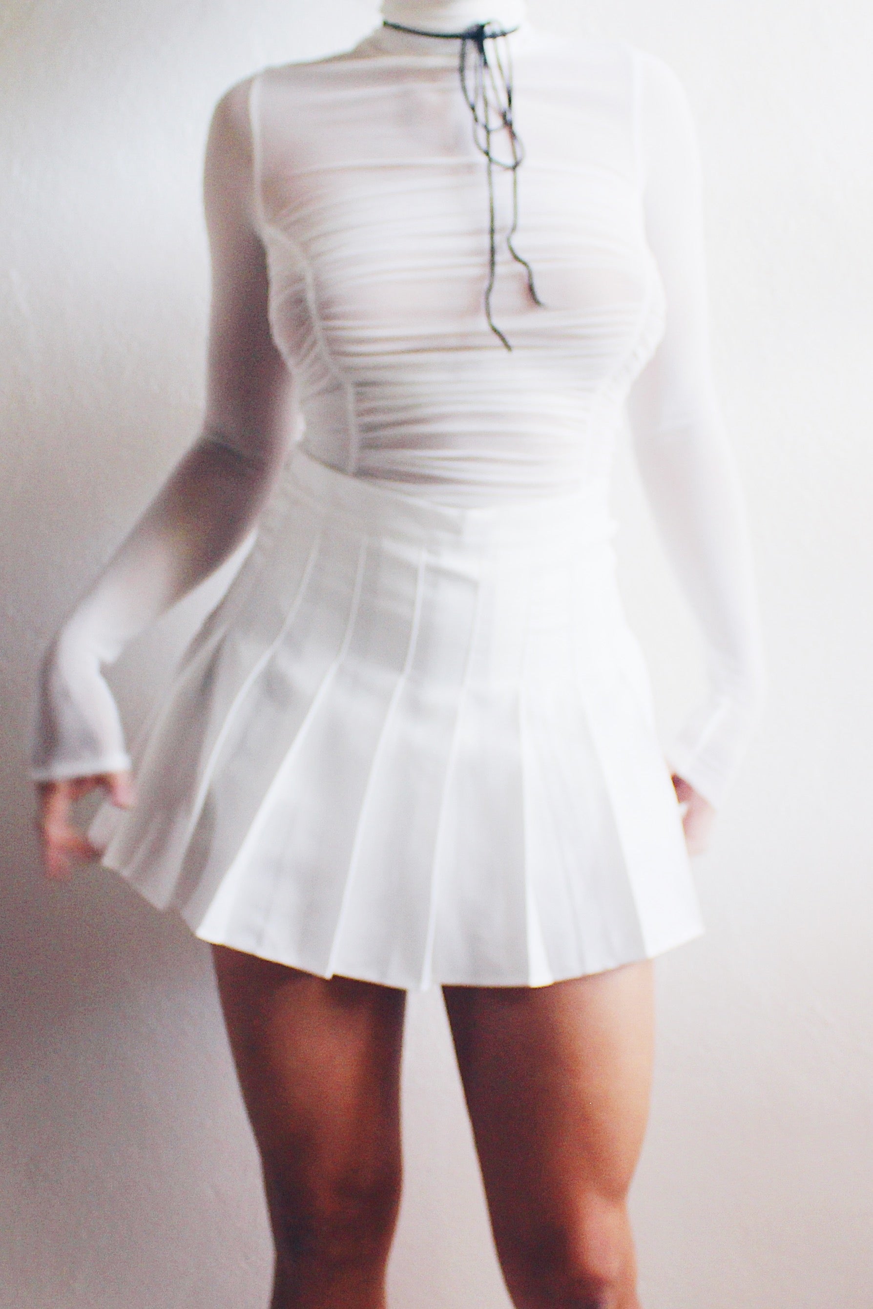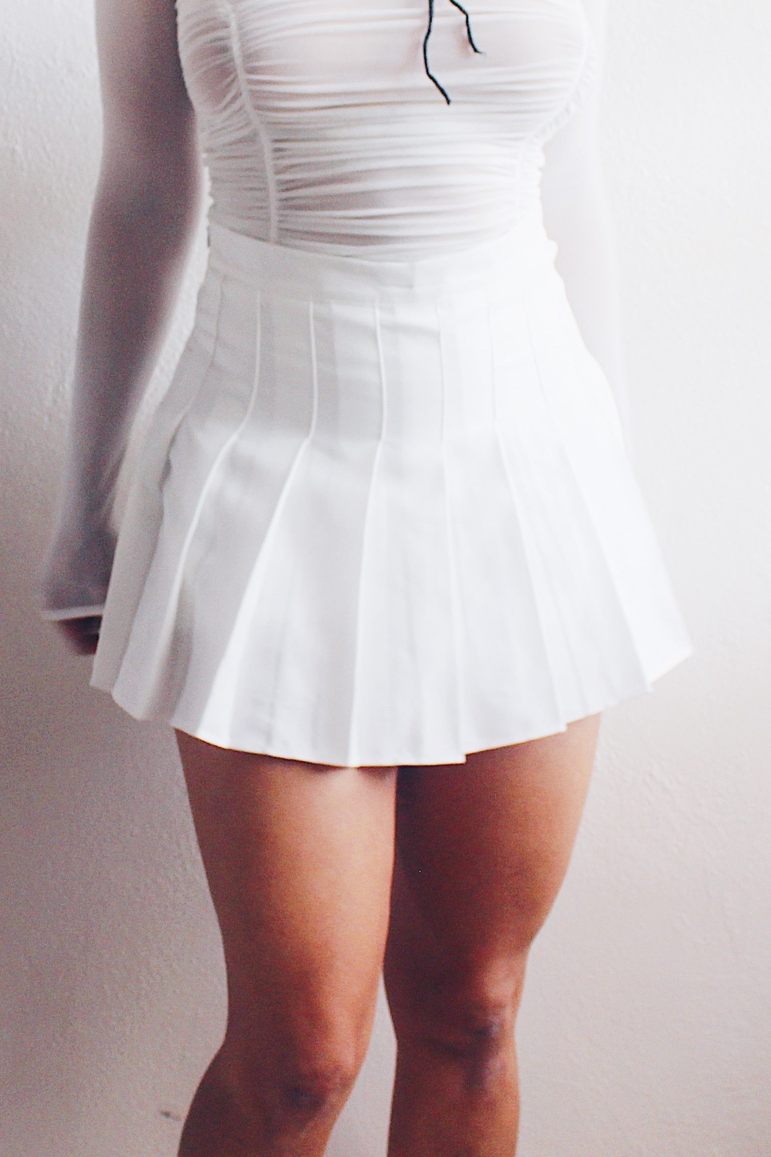 Are you ready to redefine a coquette classic? This white pleated skirt brings scholarly style to the next level. It's not just a skirt; it's an ode to classic elegance. This skirt zips up in the back and has built in spanx to it. Itβs also perfect for layering!