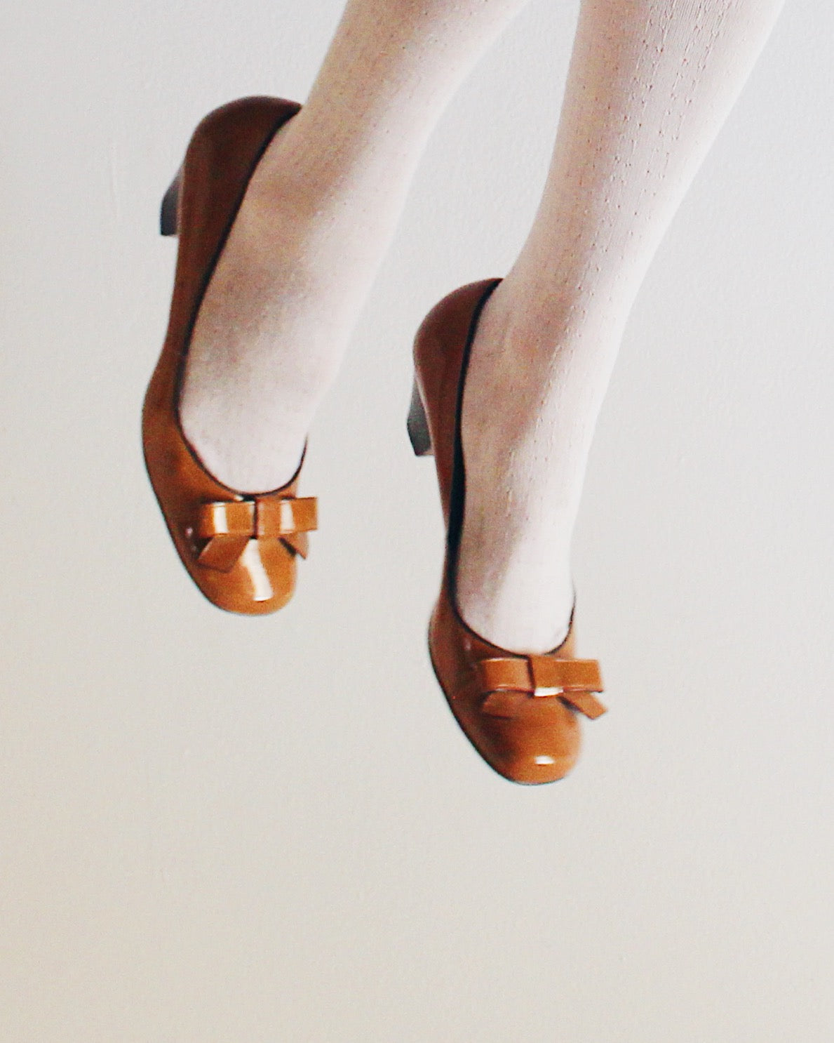 Vintage Franco Sarto Tan Leather Kitten Heels — 90s Bow Detail • Scholarly Coquette Pumps