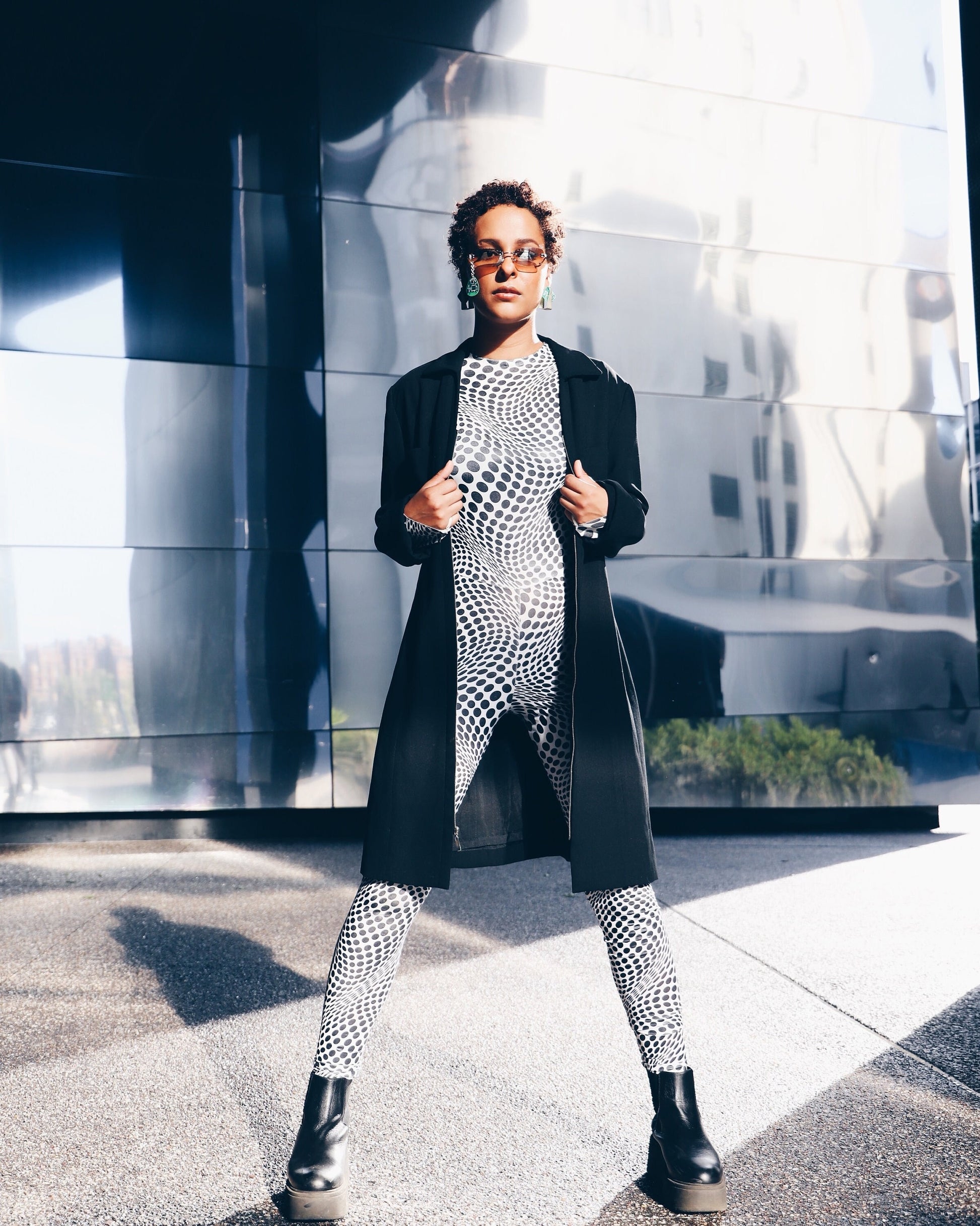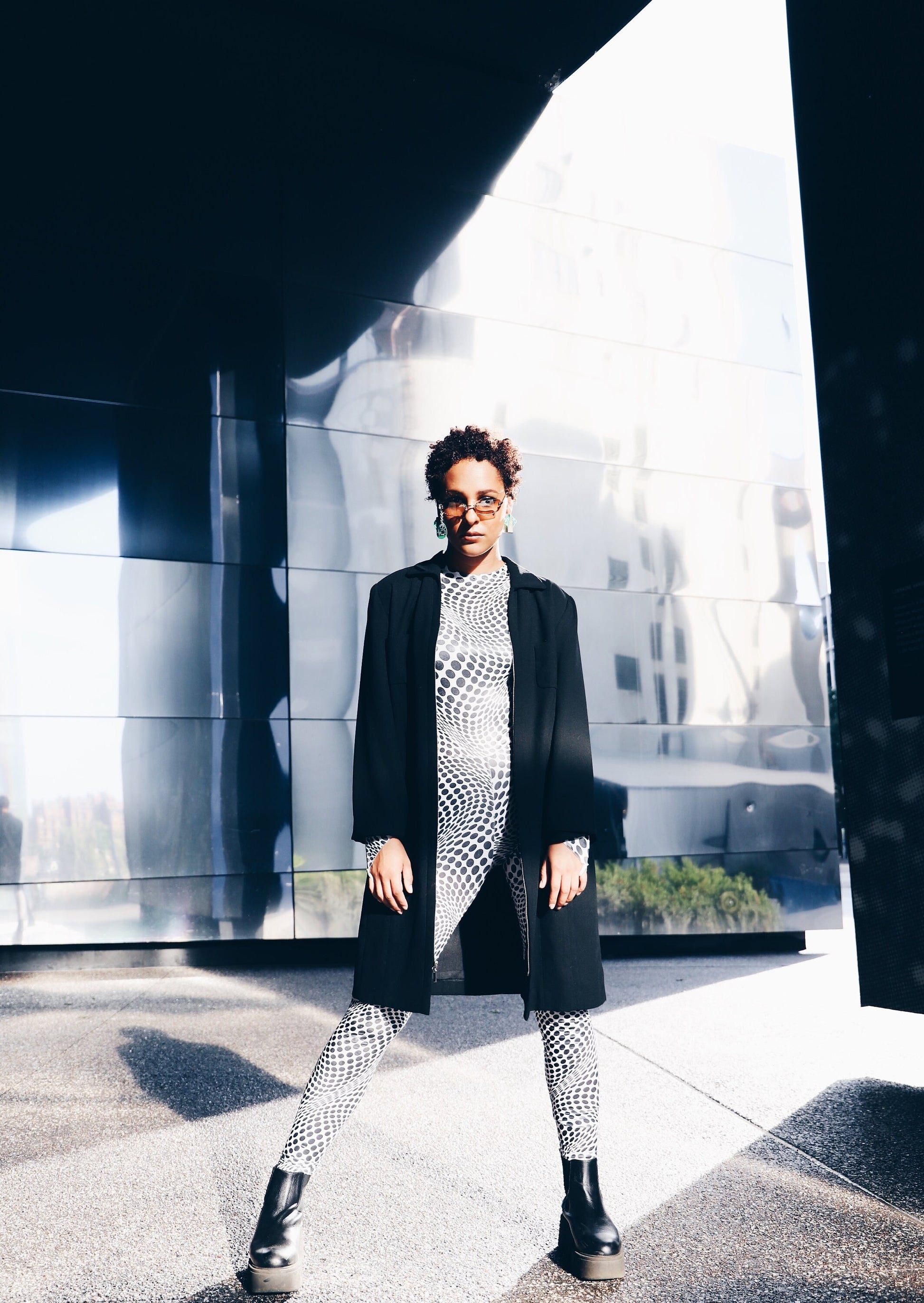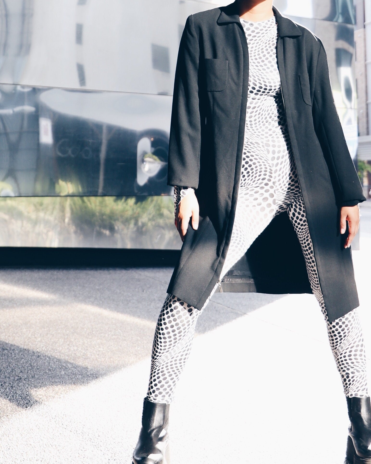 Trinity Chic: Vintage Long Black Blazer - Minimalist Futuristic Style for Cool Weather Elegance