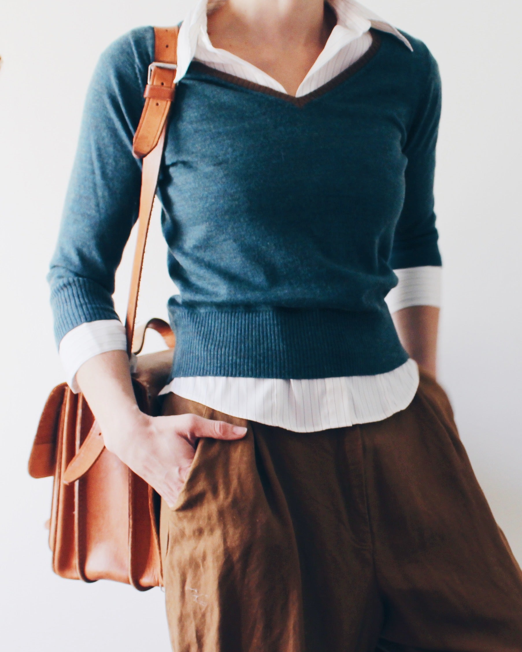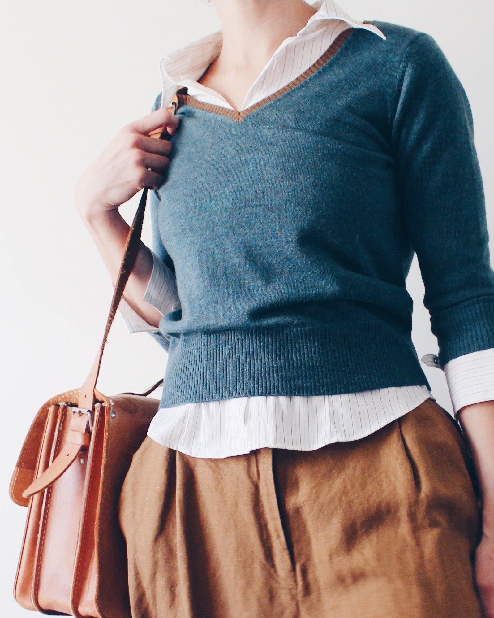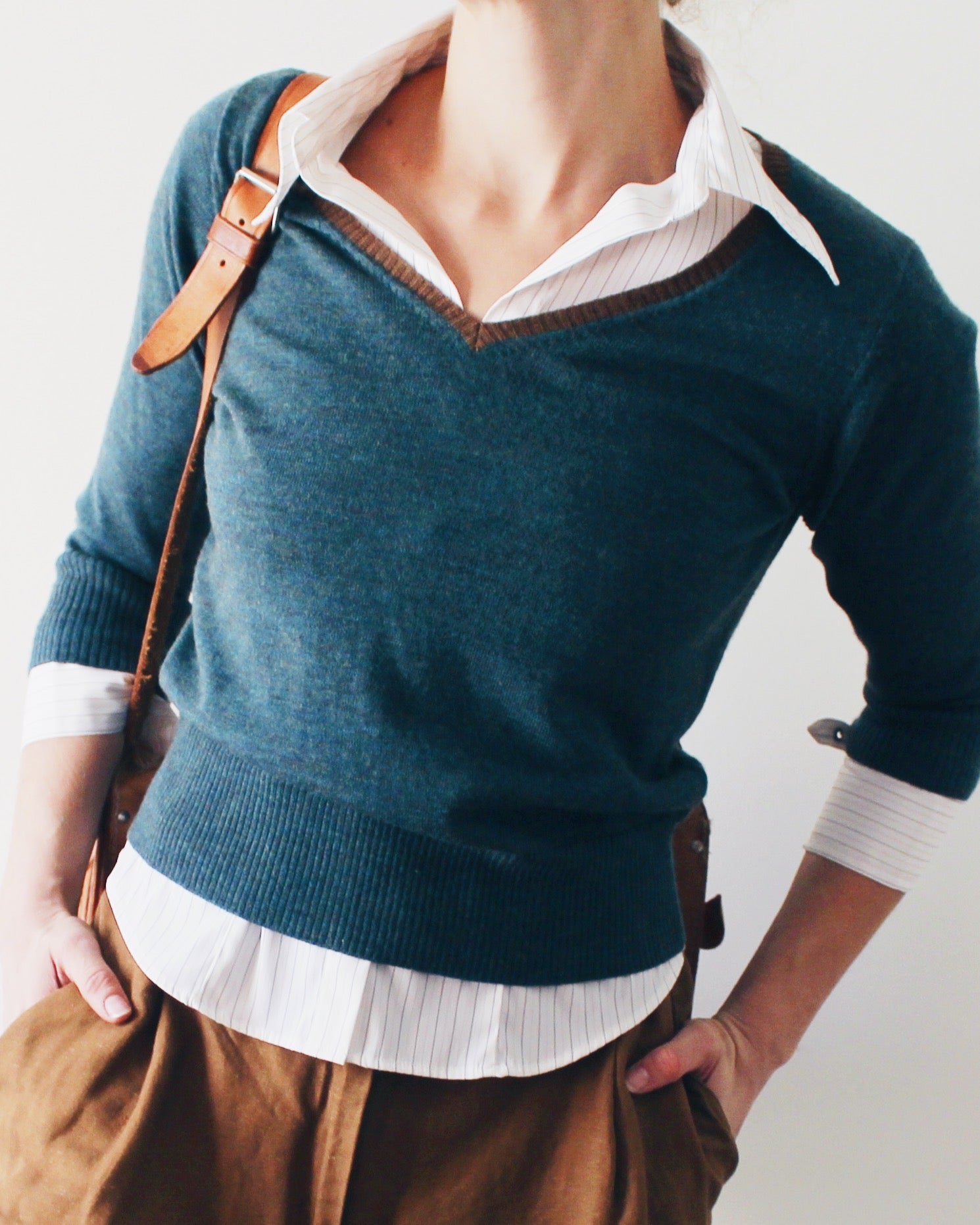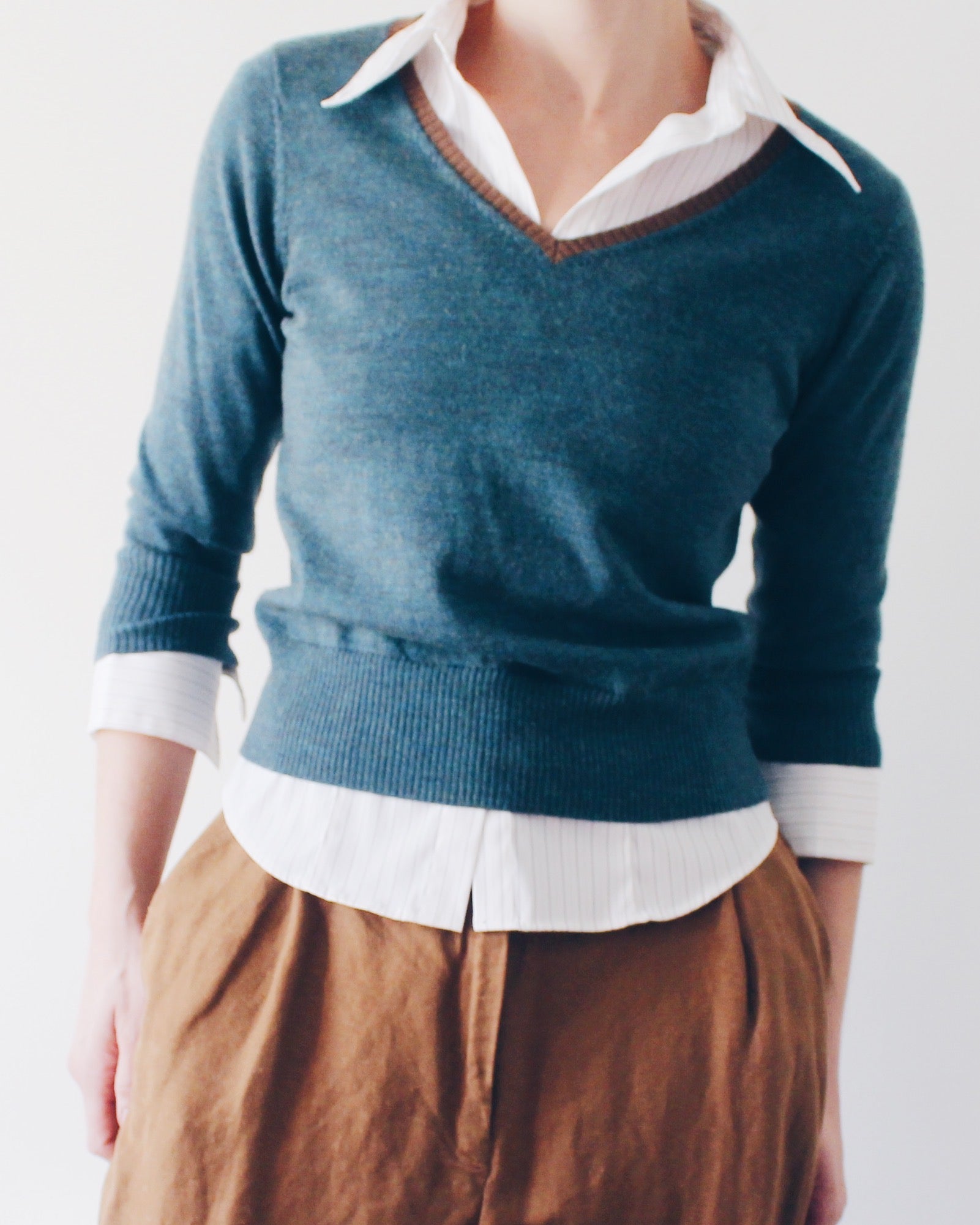Vintage 100% Italian Merino Wool Sweater – Teal Blue Minimalist Academic Layering Pullover