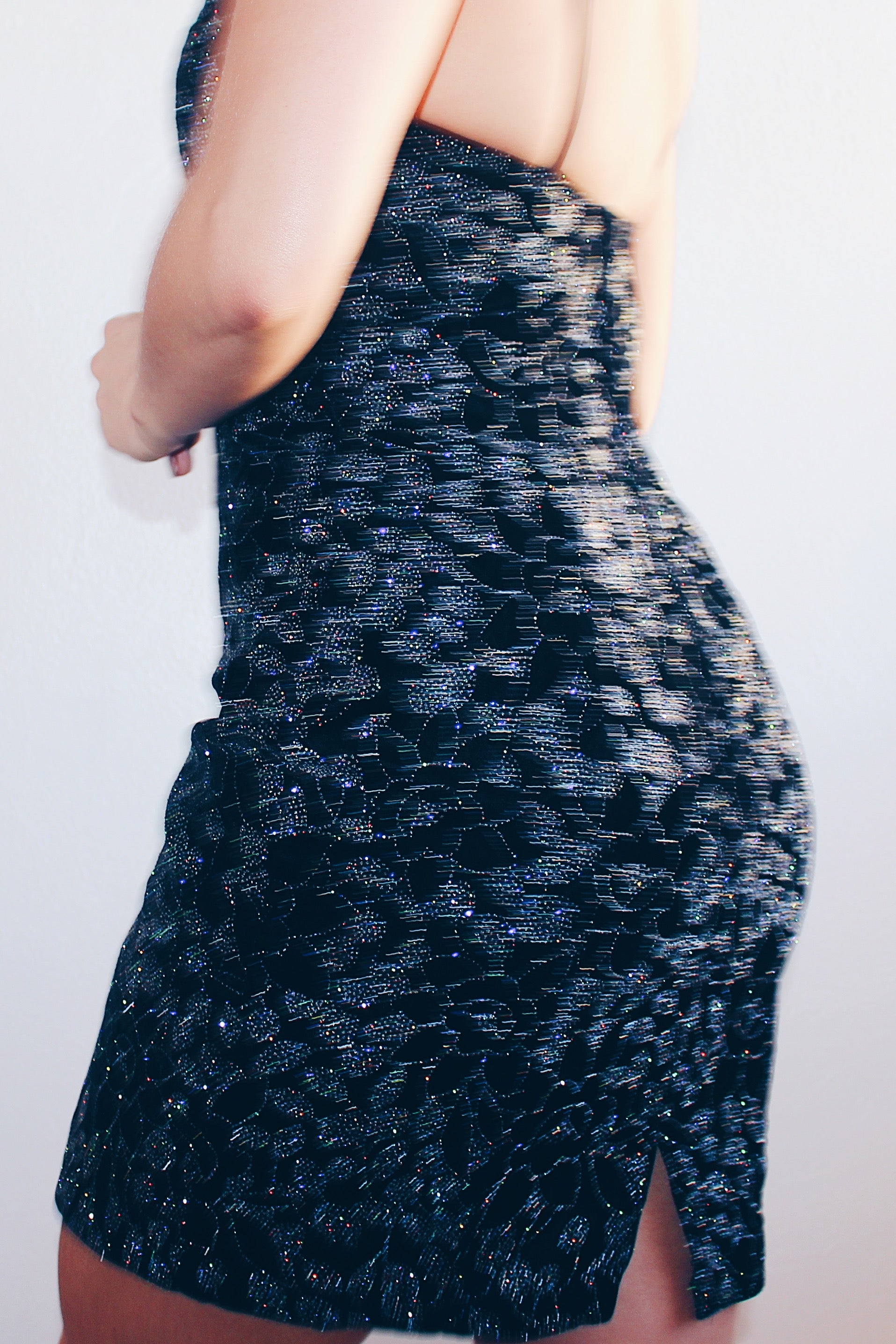 Festive Sparkle: Whether you're counting down at a party or dancing the night away, this glittery mini dress is the epitome of festive glamour.