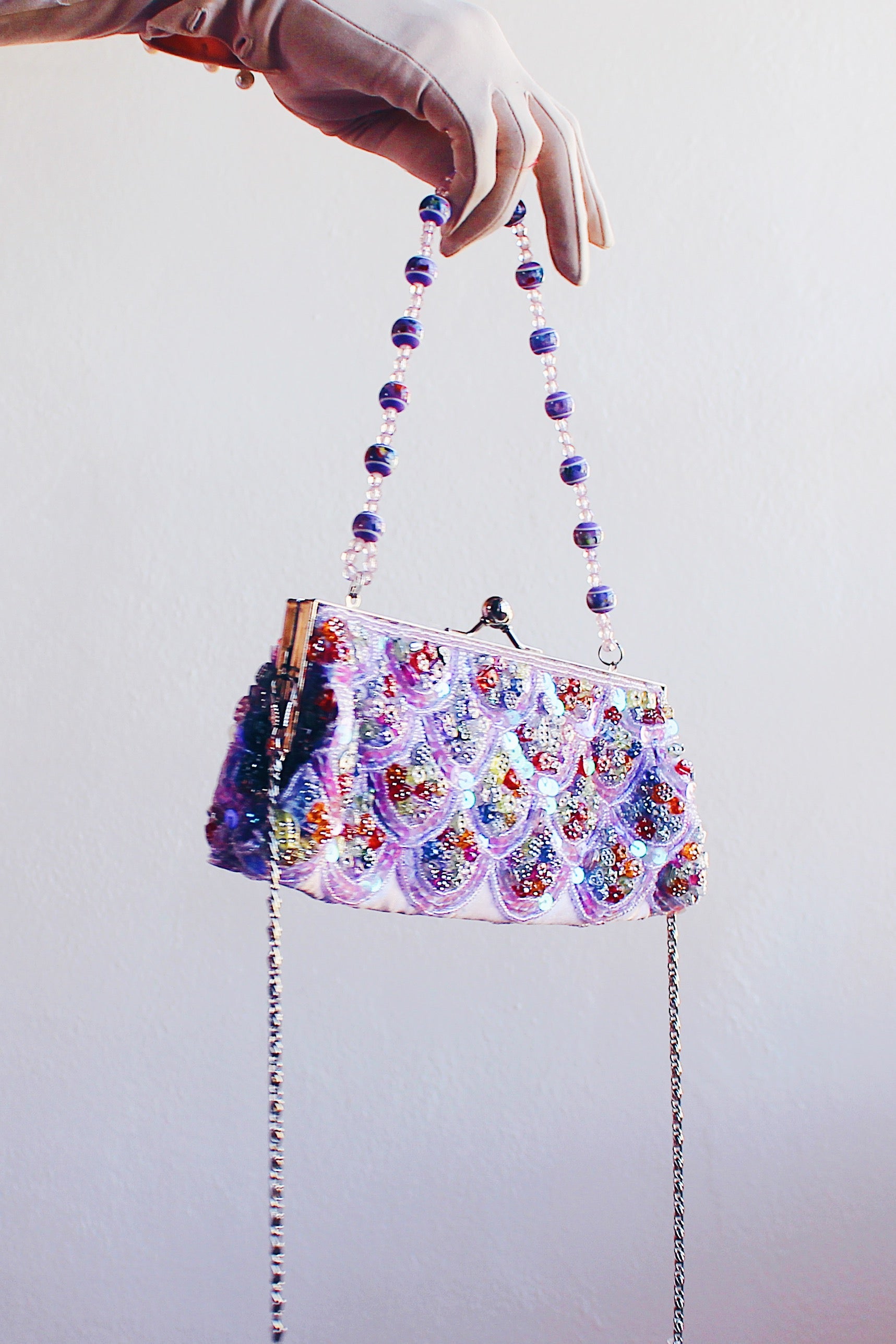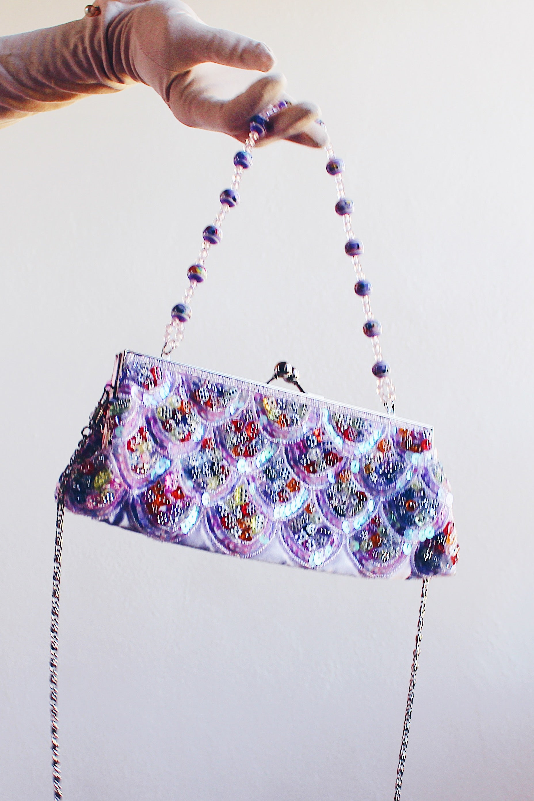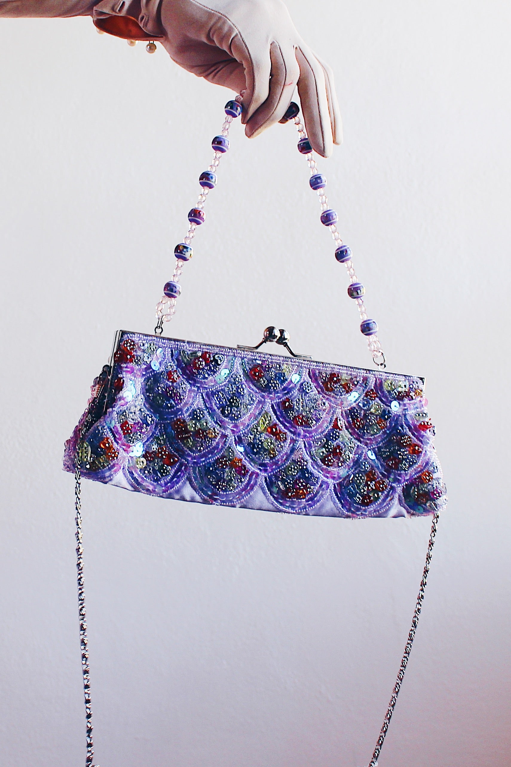 Purple Vintage Beaded Sequin Purse from Y2K - Cute Girly Elegance