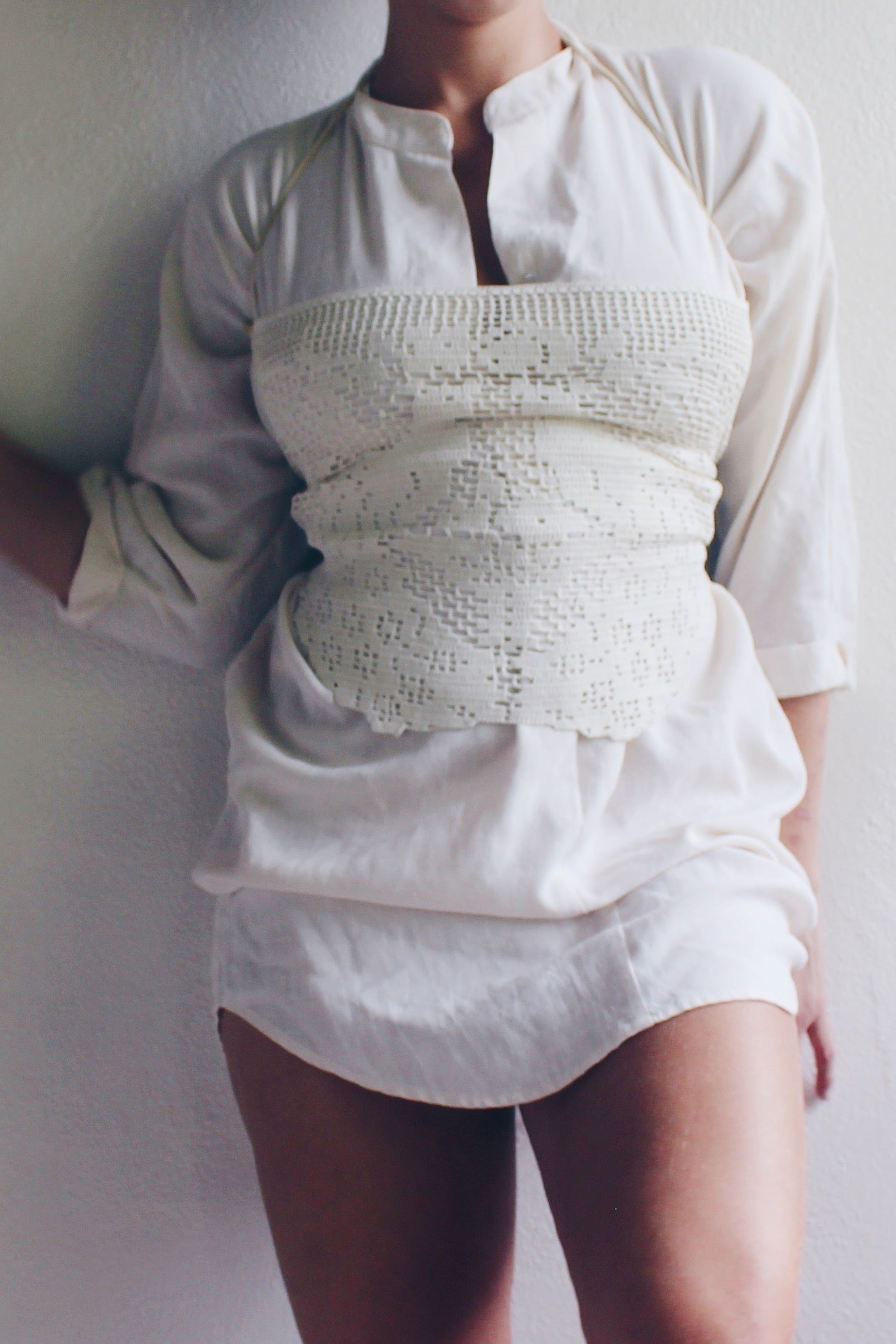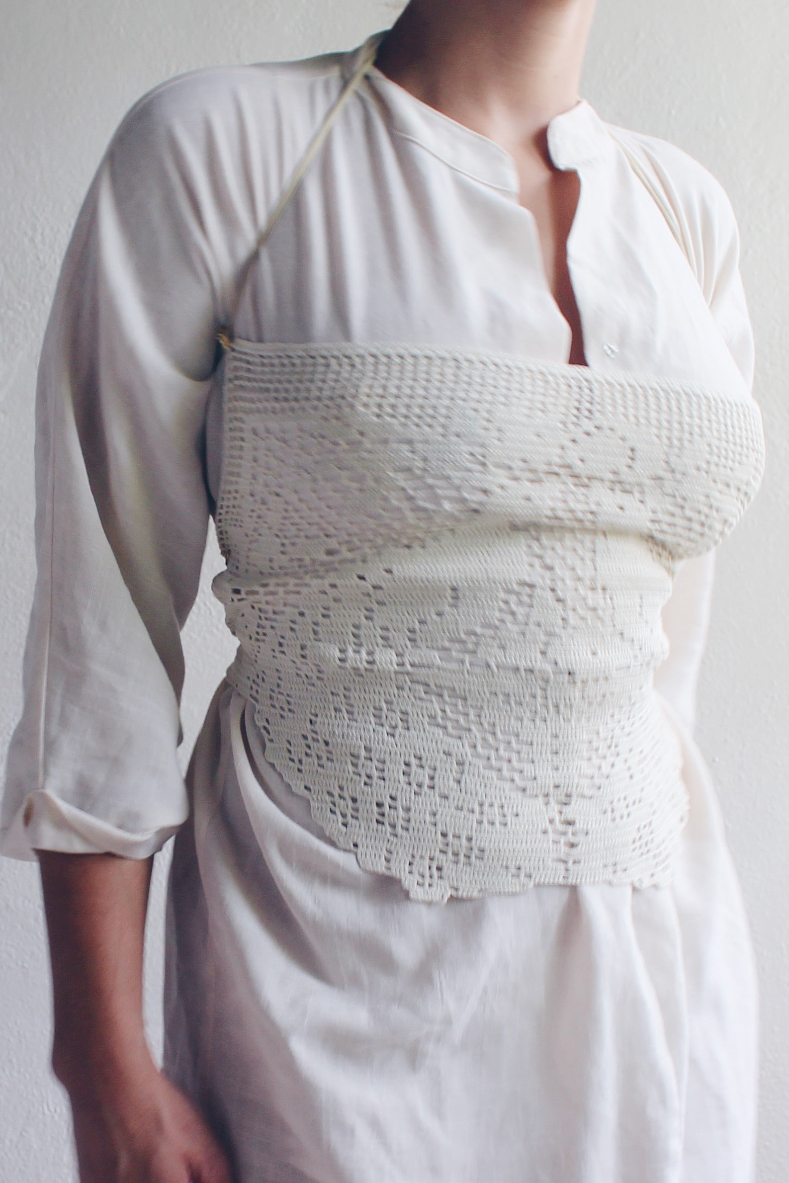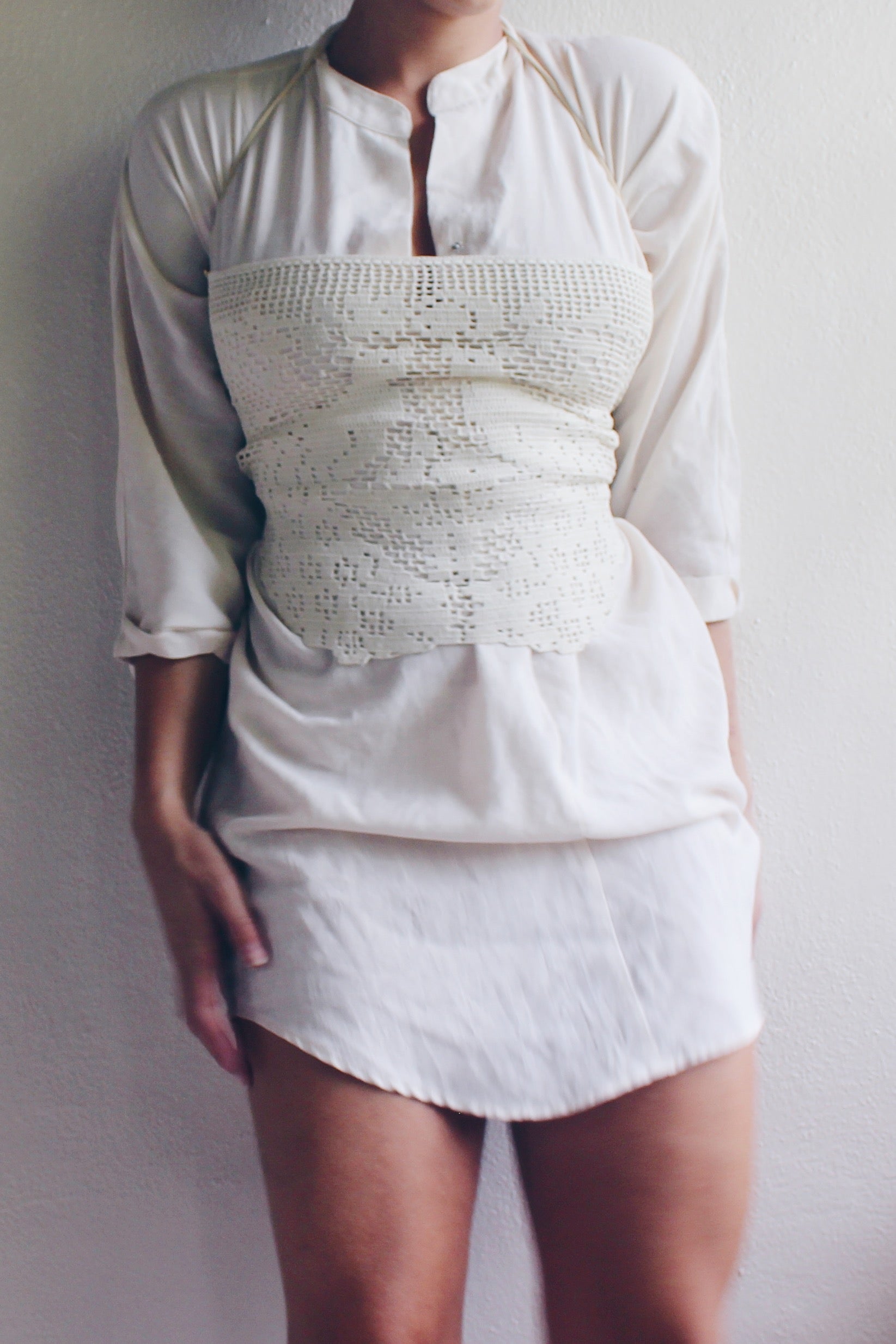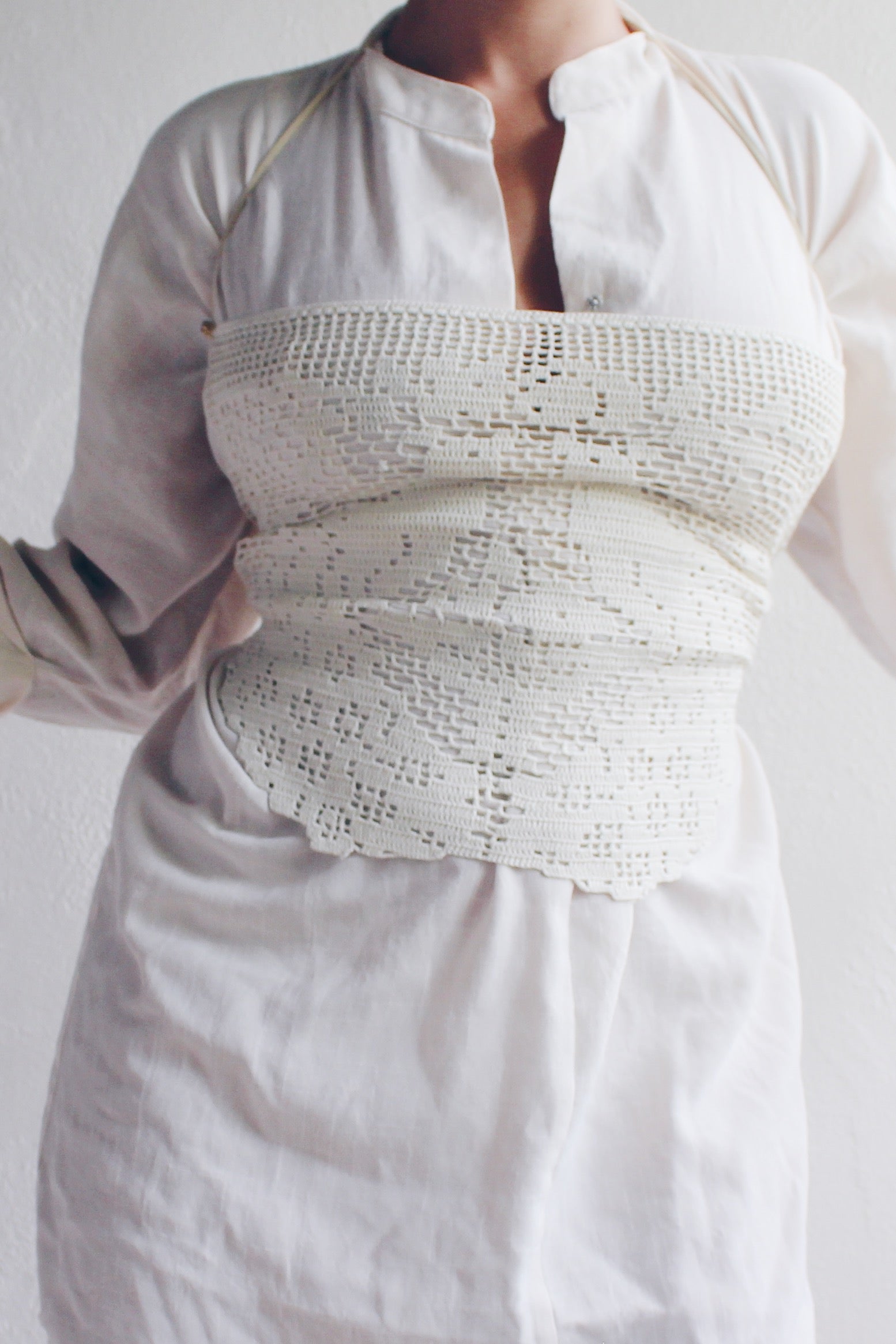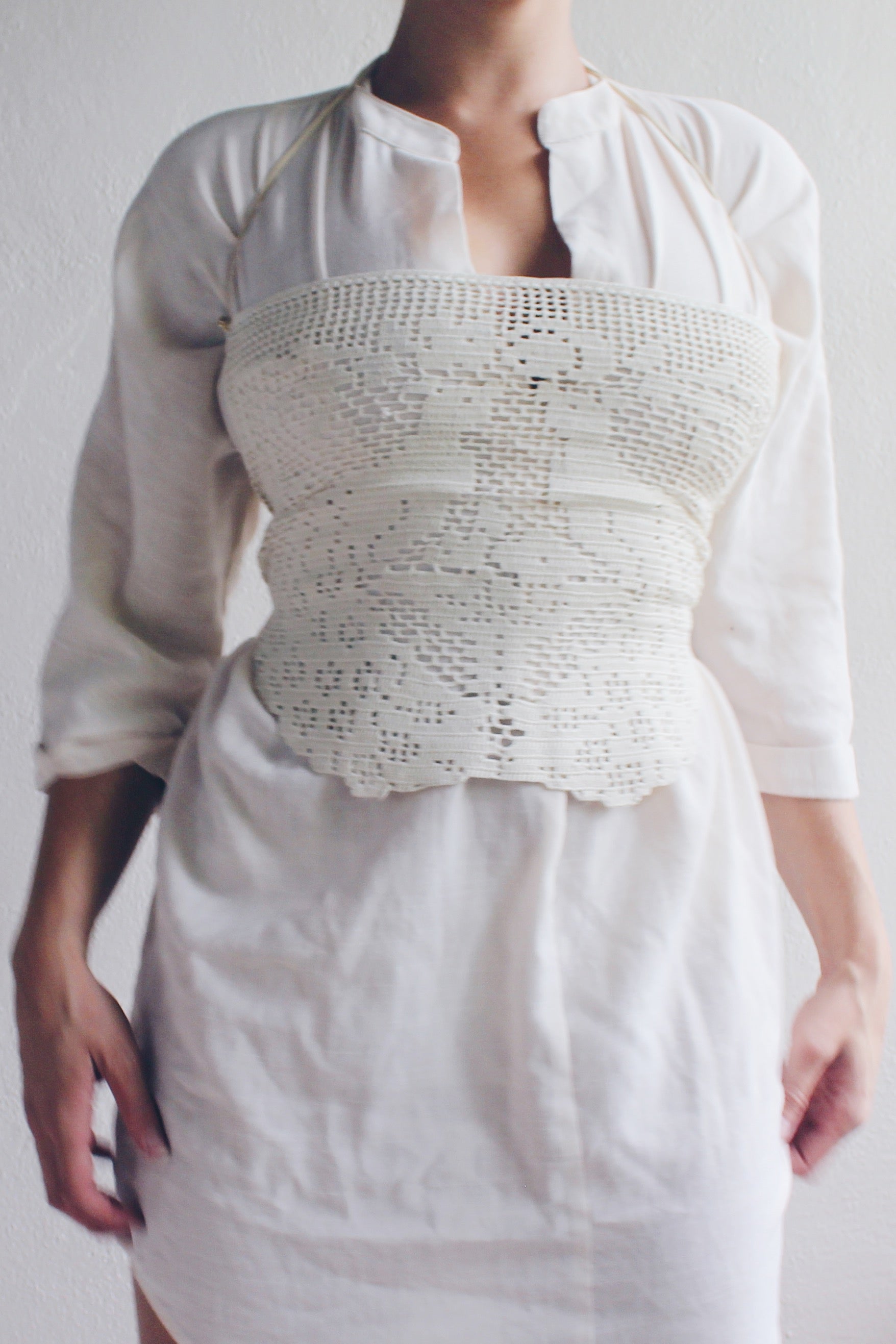 Lovely crop top made from a vintage doily. Can be worn on its own or layered as an accessory.