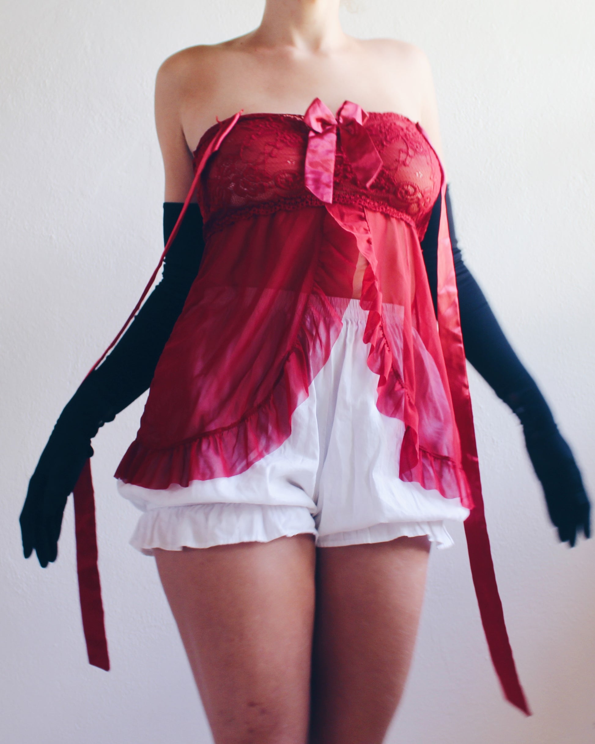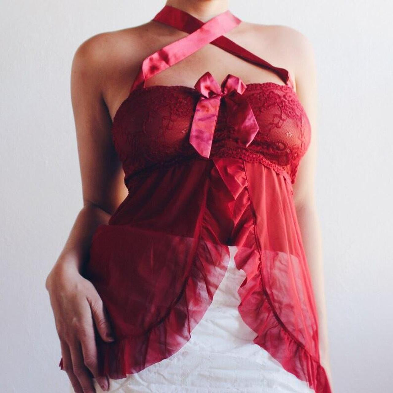 Seductive Red Elegance: Lace and Ruffle Babydoll Camisole - Coquette Romance for Valentine's
