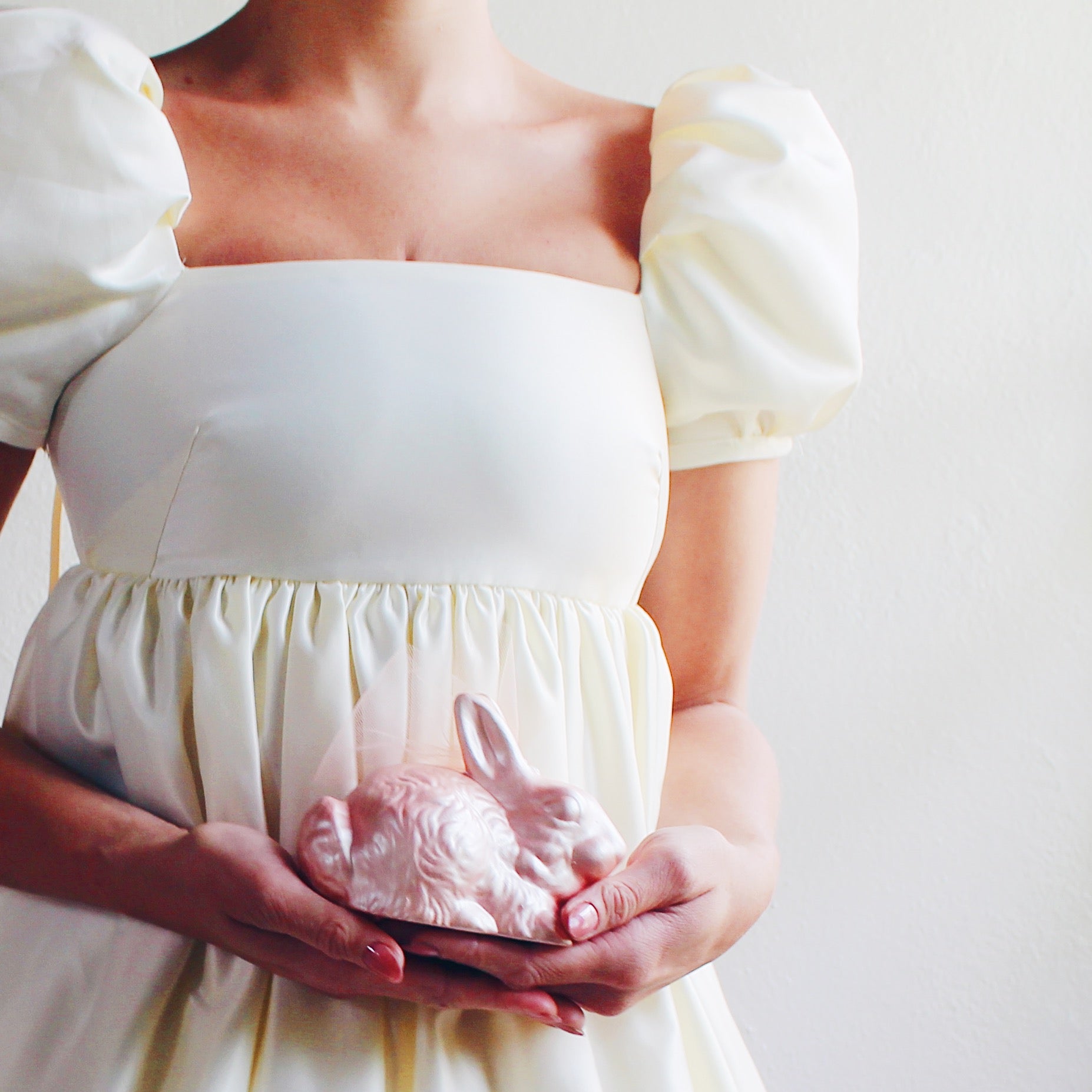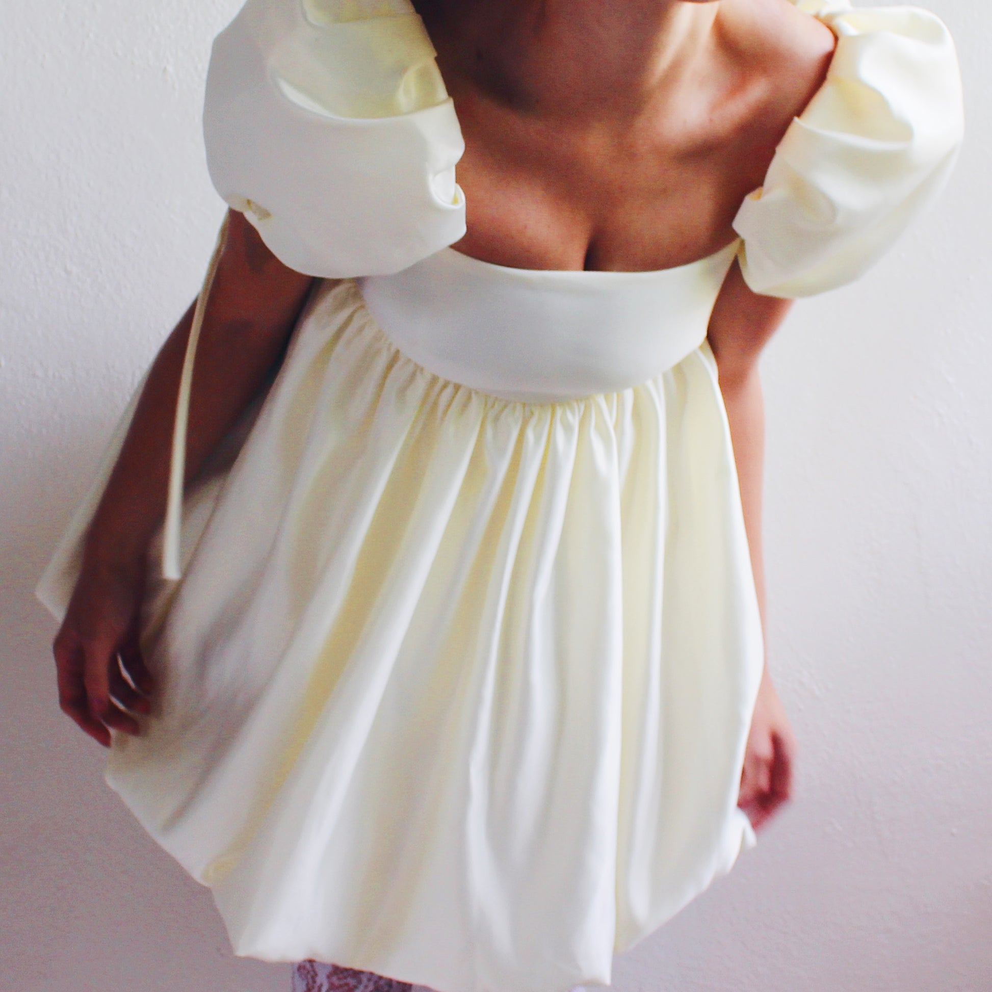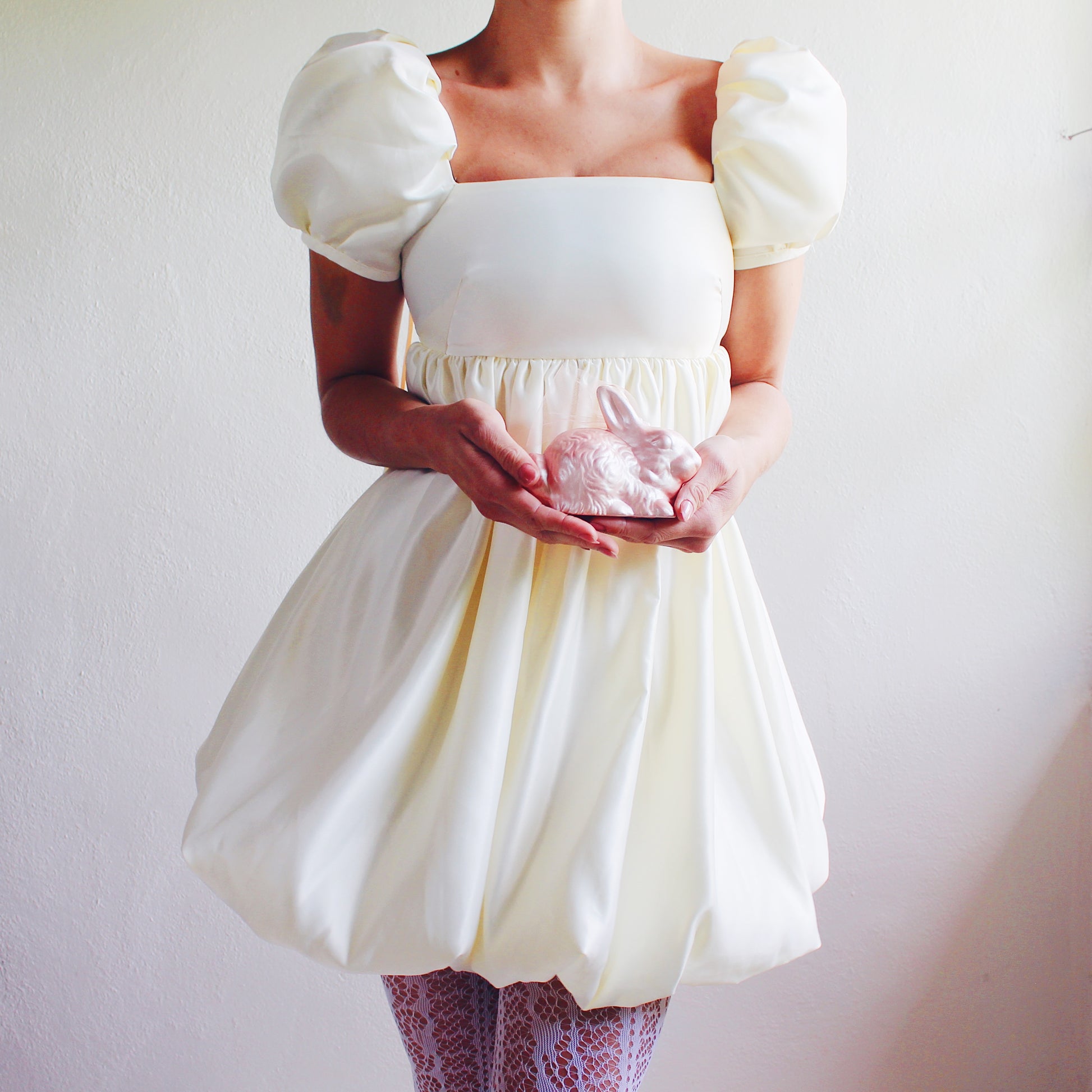 Upcycled Cream Babydoll Dress - Selkie like Cute Coquette Style with Bubble Sleeves | Perfect for Formal Events