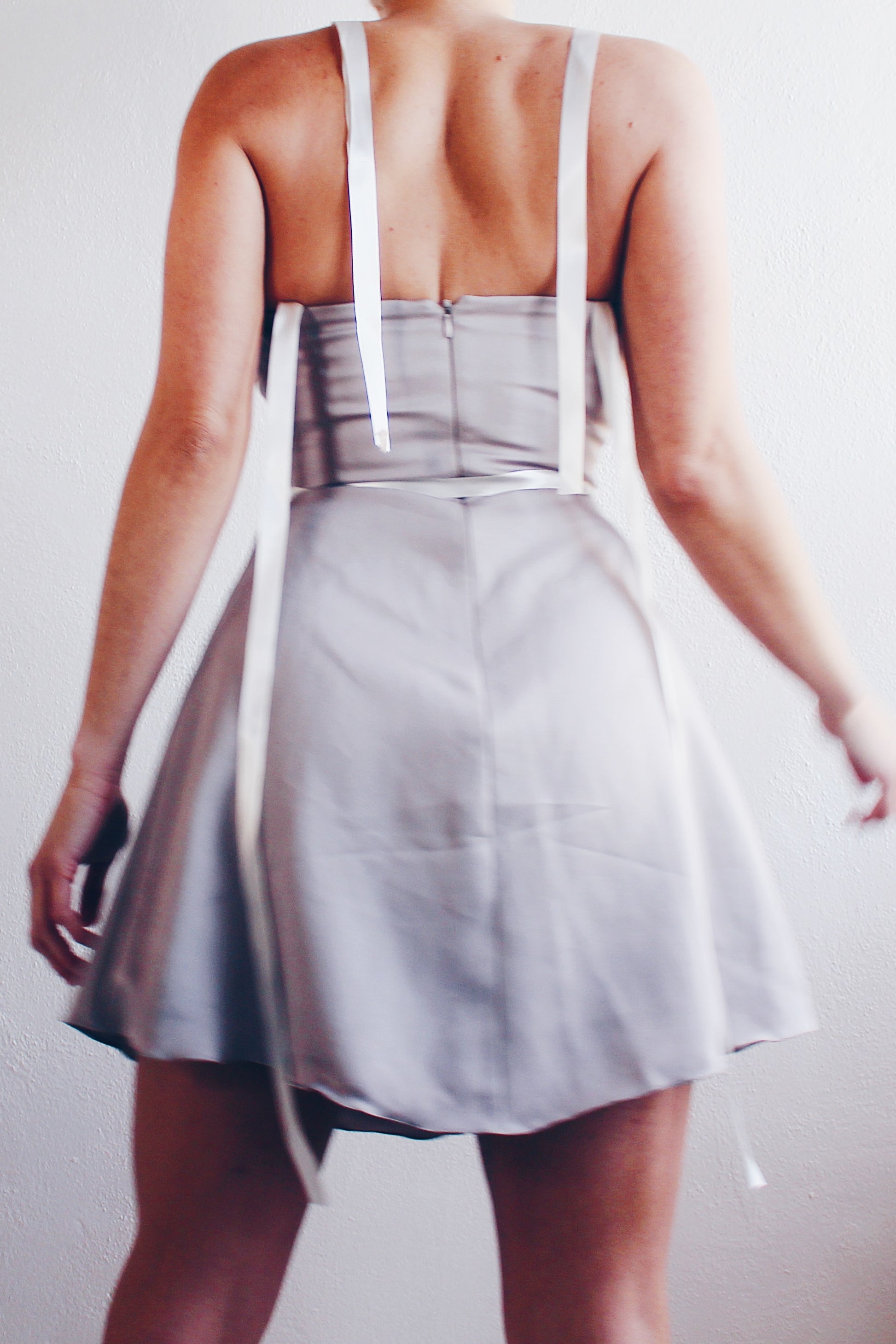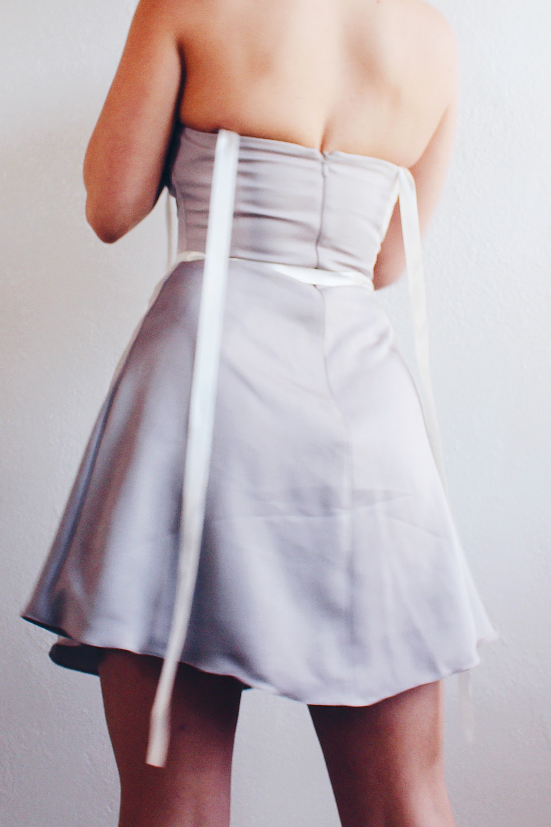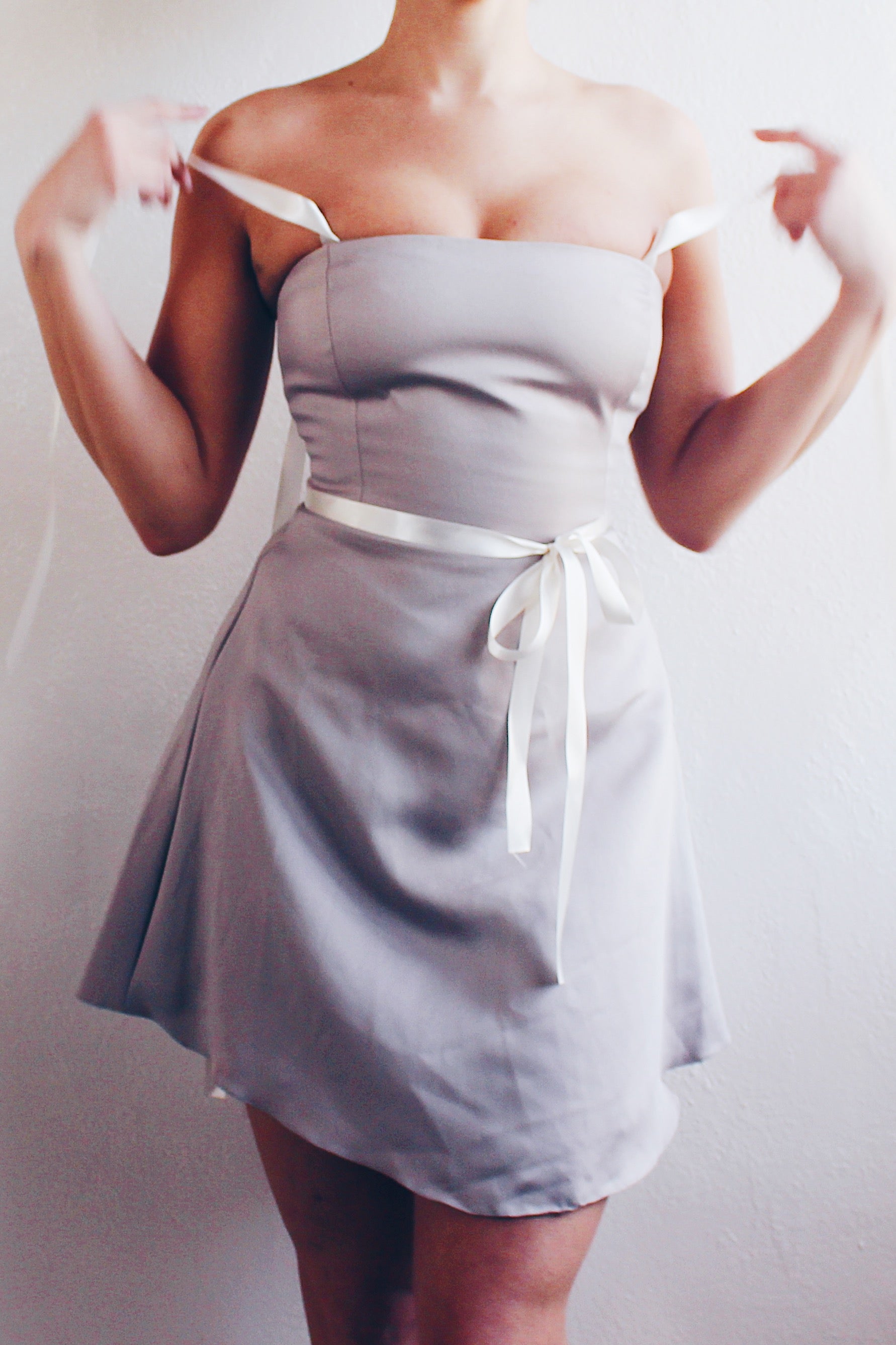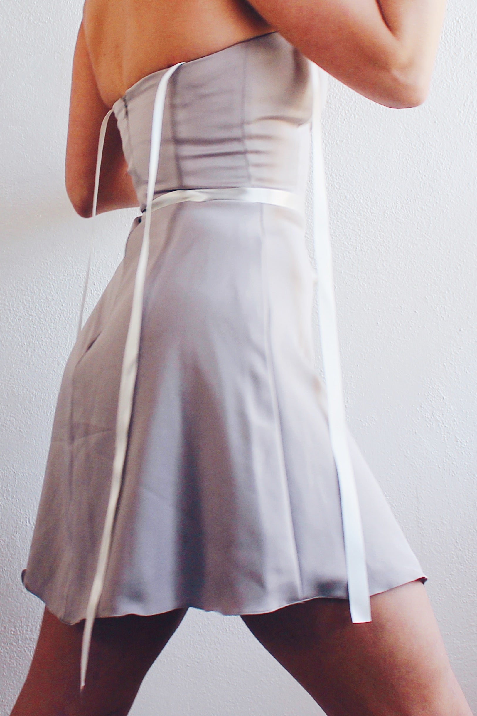 Less is more, especially when it comes to style. This dress proves that you don't need excessive frills to make a statement; a well-tailored silhouette and sleek design do the trick. Make a statement with this minimalist yet chic dress, carefully designed to accentuate your figure. The khaki-grey hue adds a timeless touch, while the upcycled ribbon details bring a personalized vintage charm.