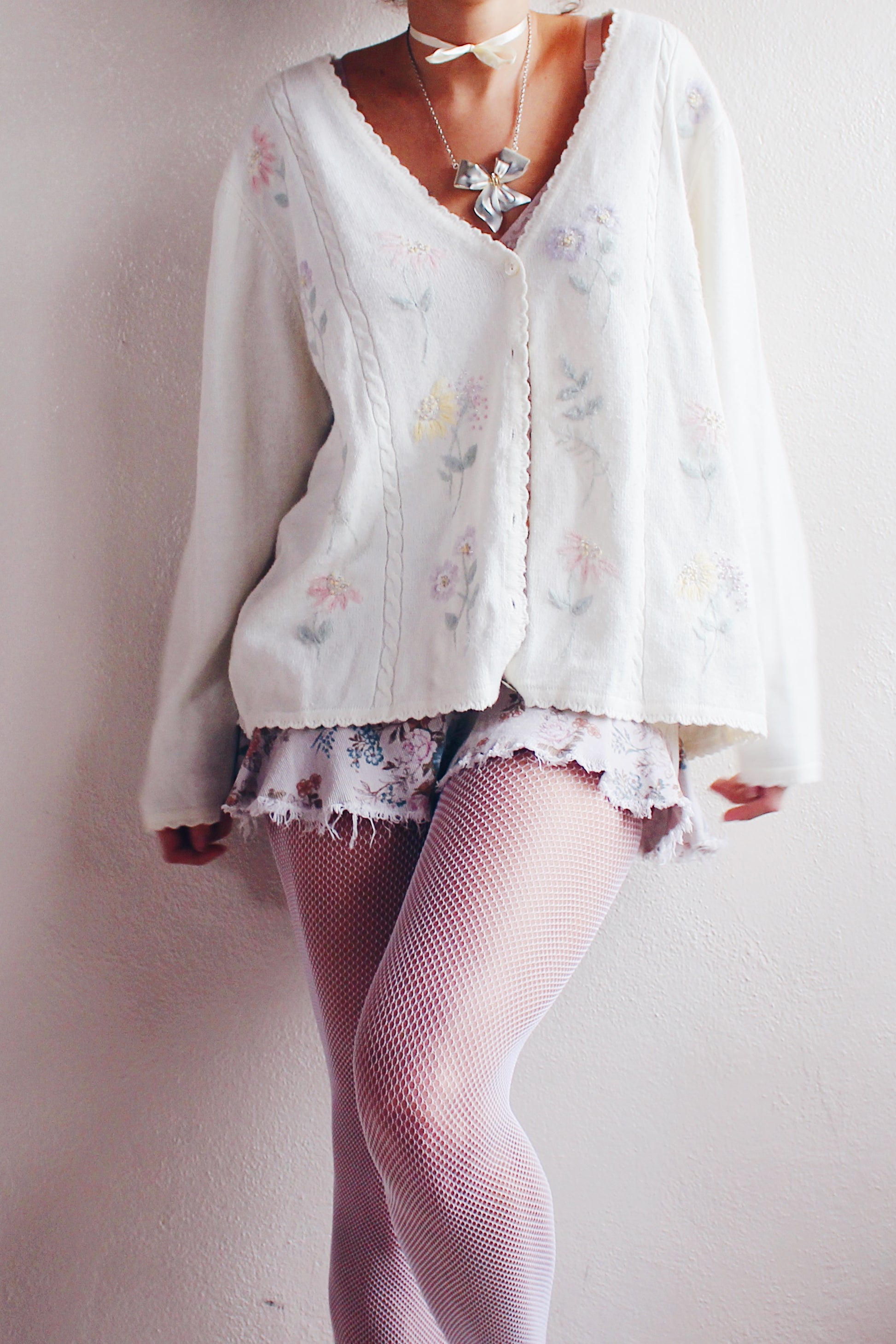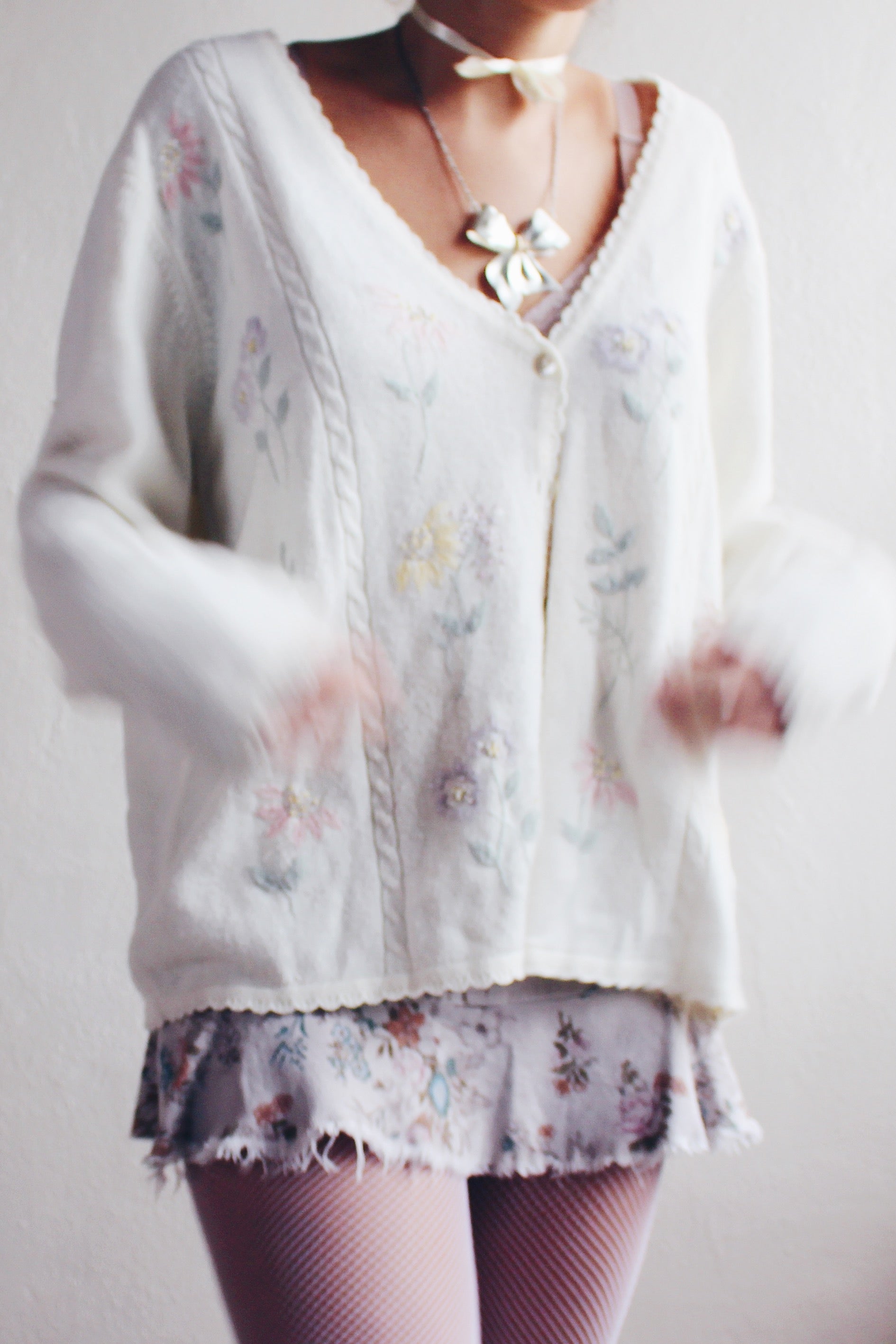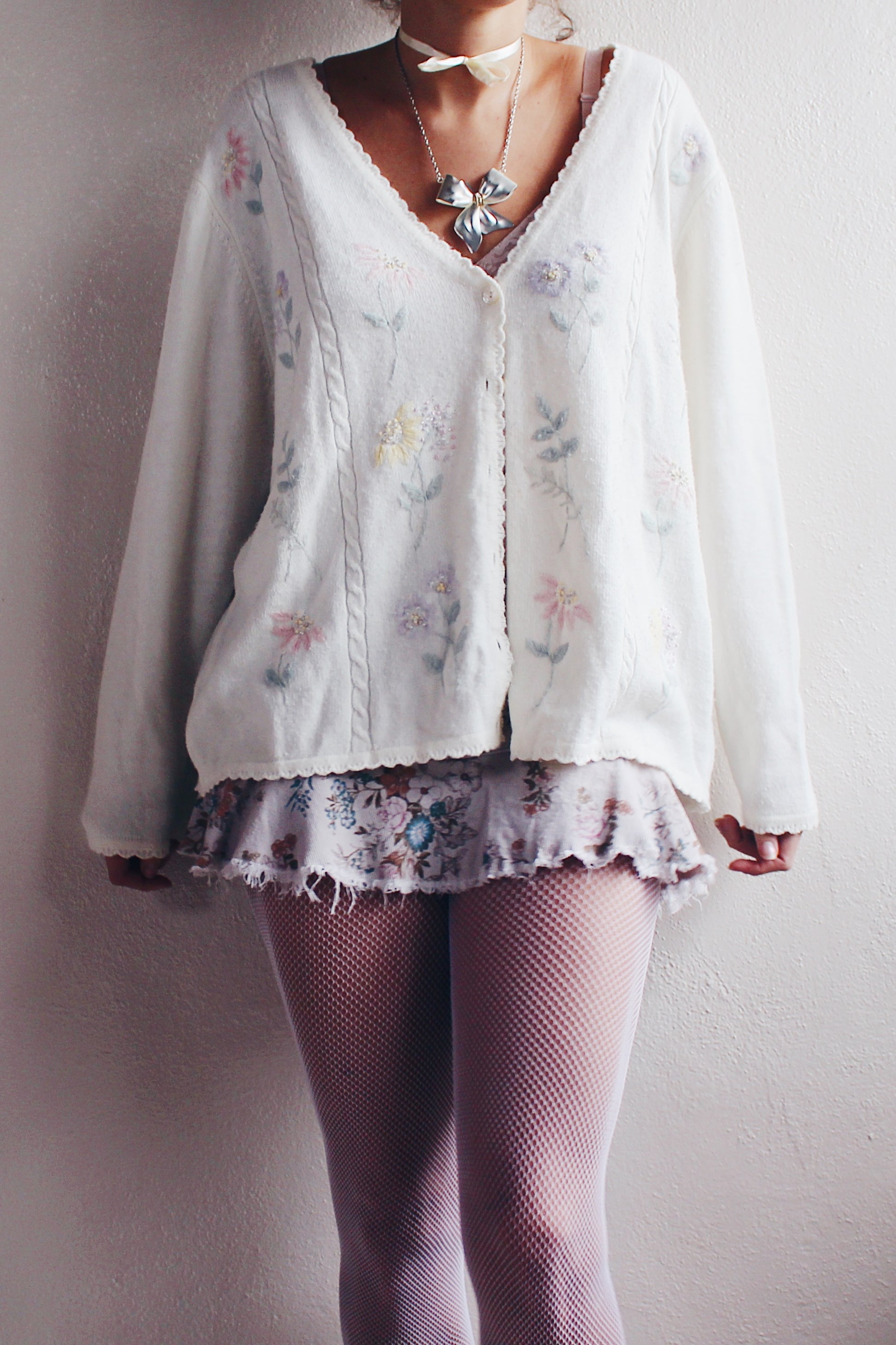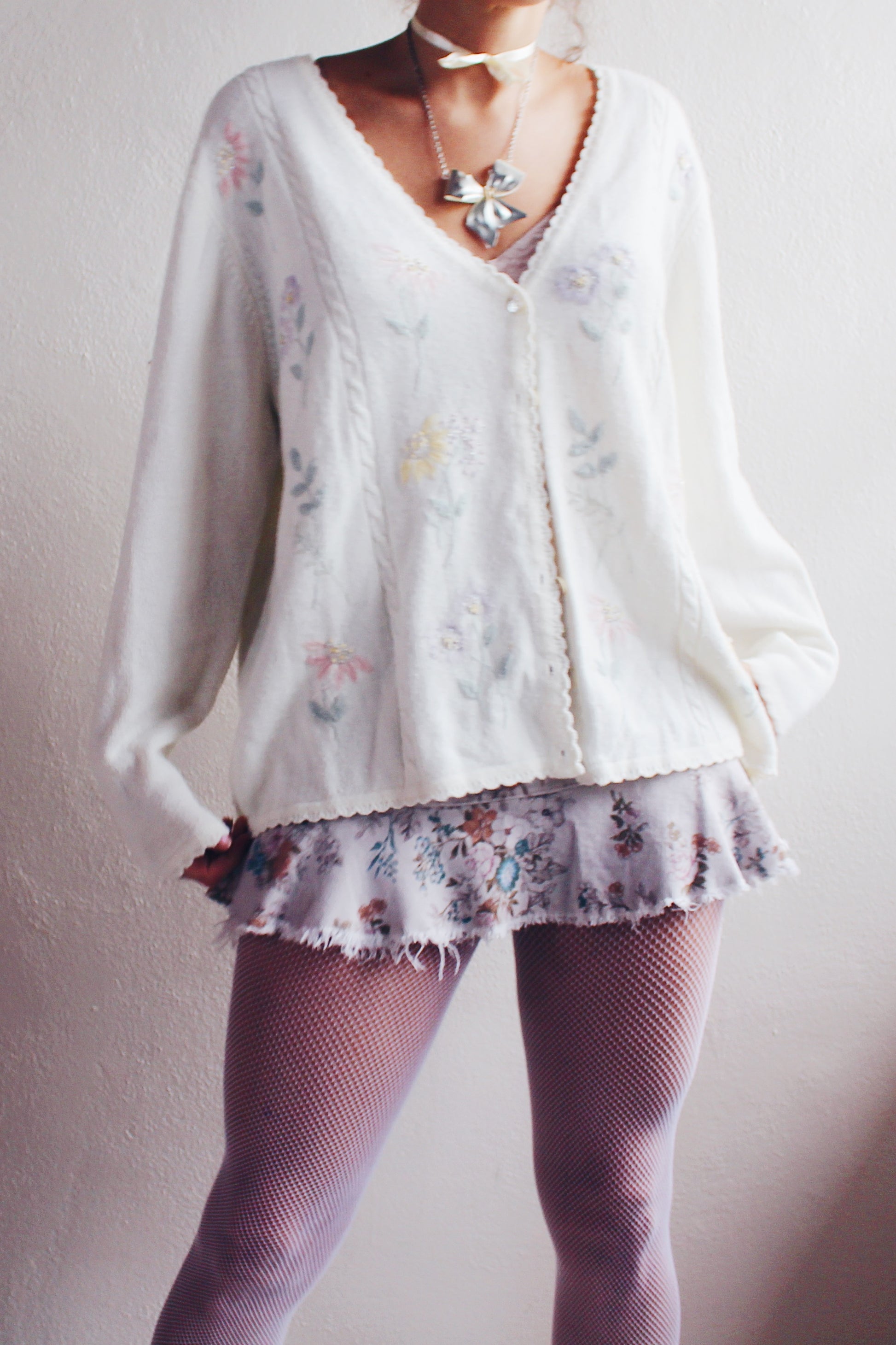 Elevate your style with this charming Vintage Cream Knit Floral Granny Cardigan from the 1980s. Embrace the retro flower power in this cozy and feminine boho sweater, reminiscent of classic grandma chic aesthetics. The intricate floral pattern adds a touch of vintage charm, making it the perfect piece for those who appreciate timeless fashion. Step into the past and make a statement with this unique and cozy grandma-style cardigan. A must-have for lovers of 80s fashion and vintage knitwear, this classic piece is sure to bring warmth and style to your wardrobe.