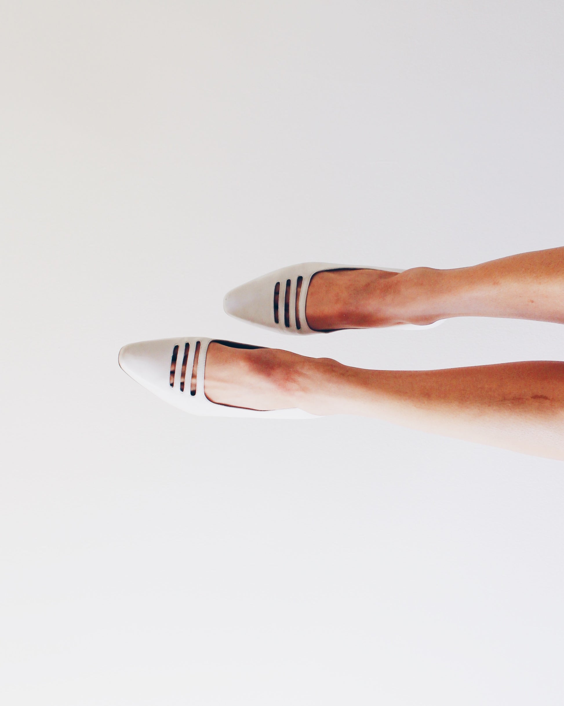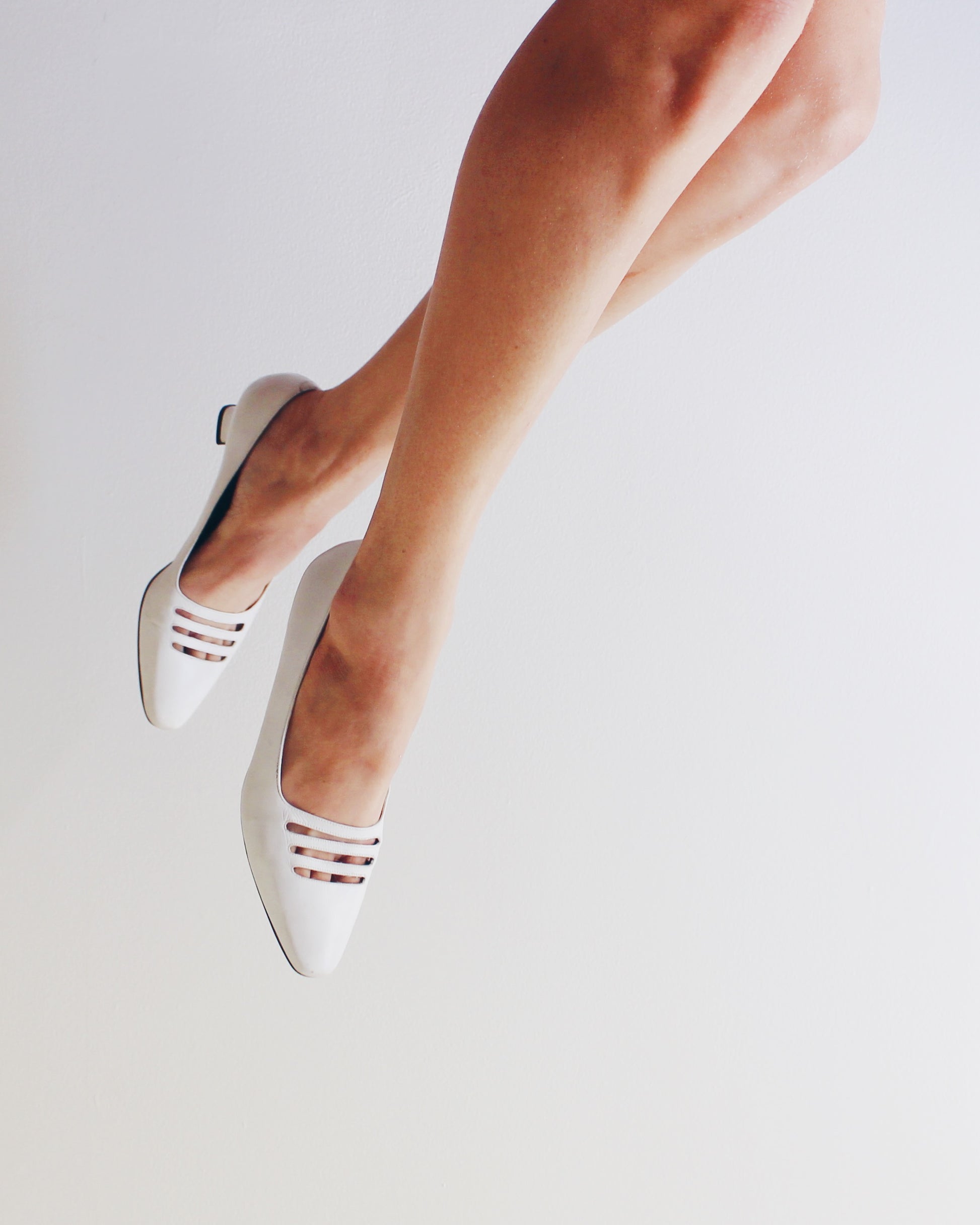 Vintage White Bandolino Kitten Heels • 90s Leather Cut-Out Pumps • Minimalist Officecore Shoes